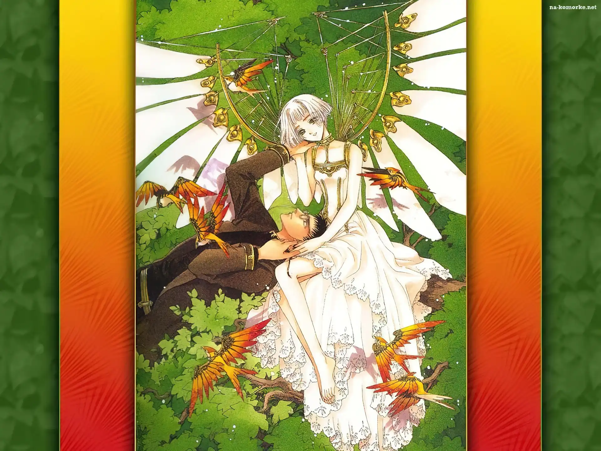Clover, ptaki, kobieta, chłopak na Komórkę