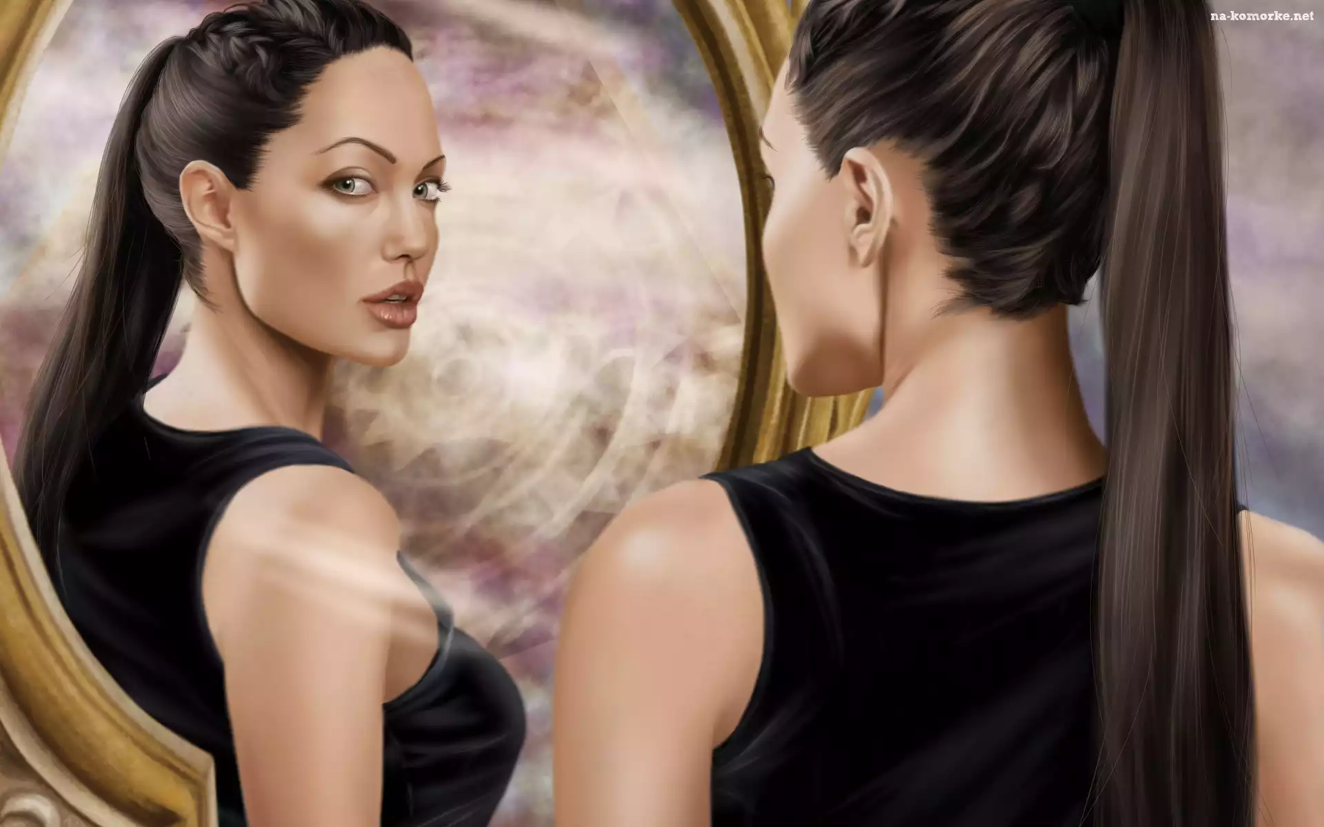 Lara Croft , Angelina Jolie, Lustro, Twarz, Tomb Raider na Komórkę
