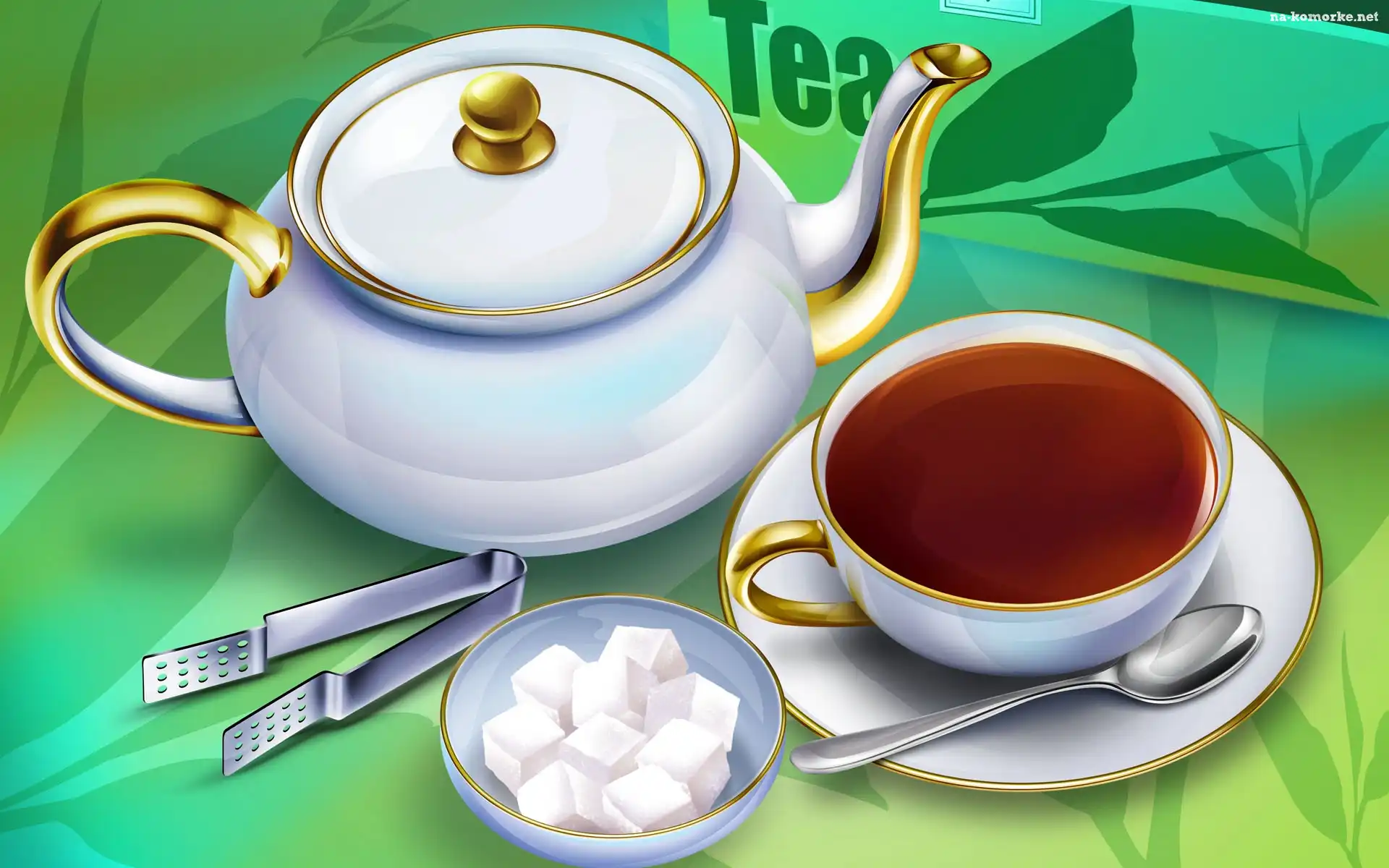 Cukru, Filiżanka, Herbaty, Dzbanek, Kostki na Komórkę