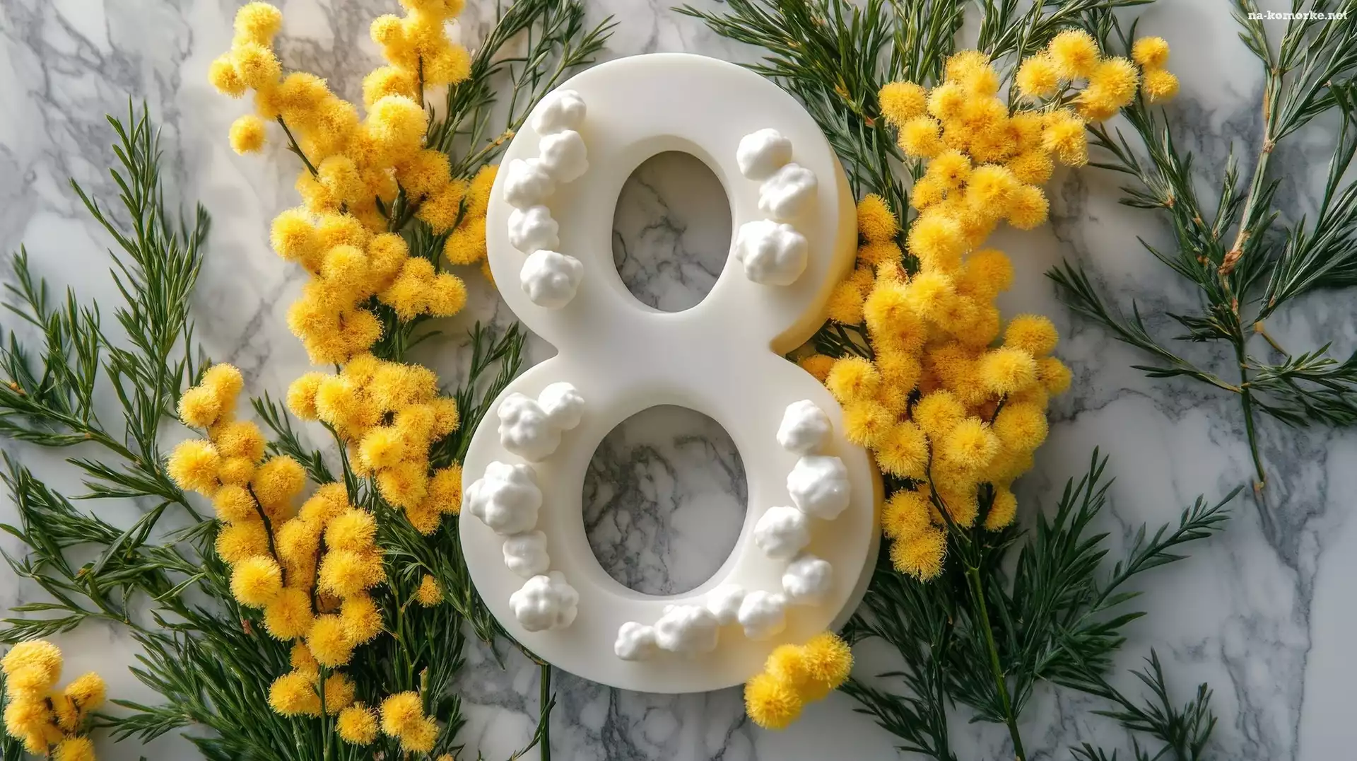 Żółte, Dzień Kobiet, Kwiaty, Akacja srebrzysta, Osiem, Cyfra na Komórkę