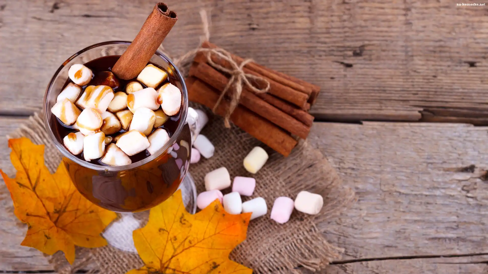 Cynamon, Napój, Szklanka, Pianki, Liście na Komórkę