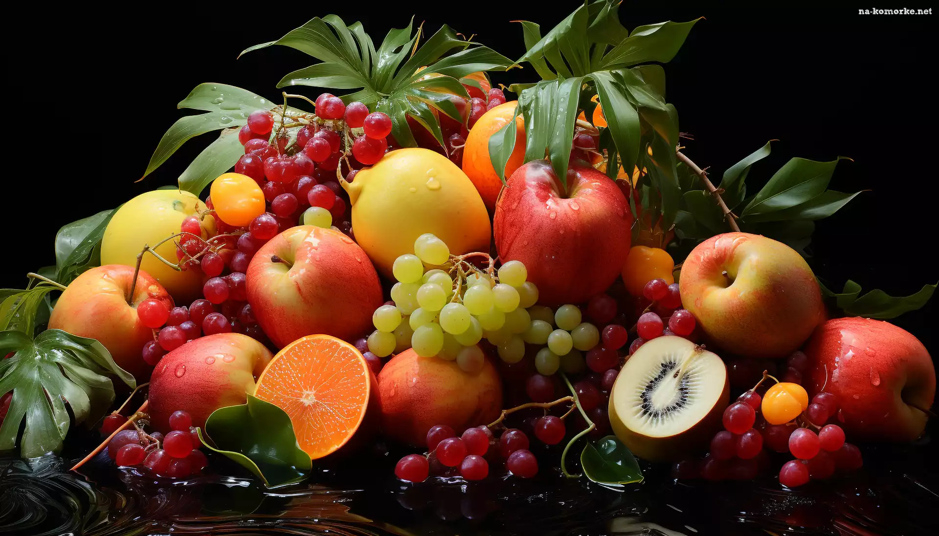 Jabłka, Pomarańcze, Czerwone, Owoce, Winogrona, Liście, Białe, Cytrusy na Komórkę