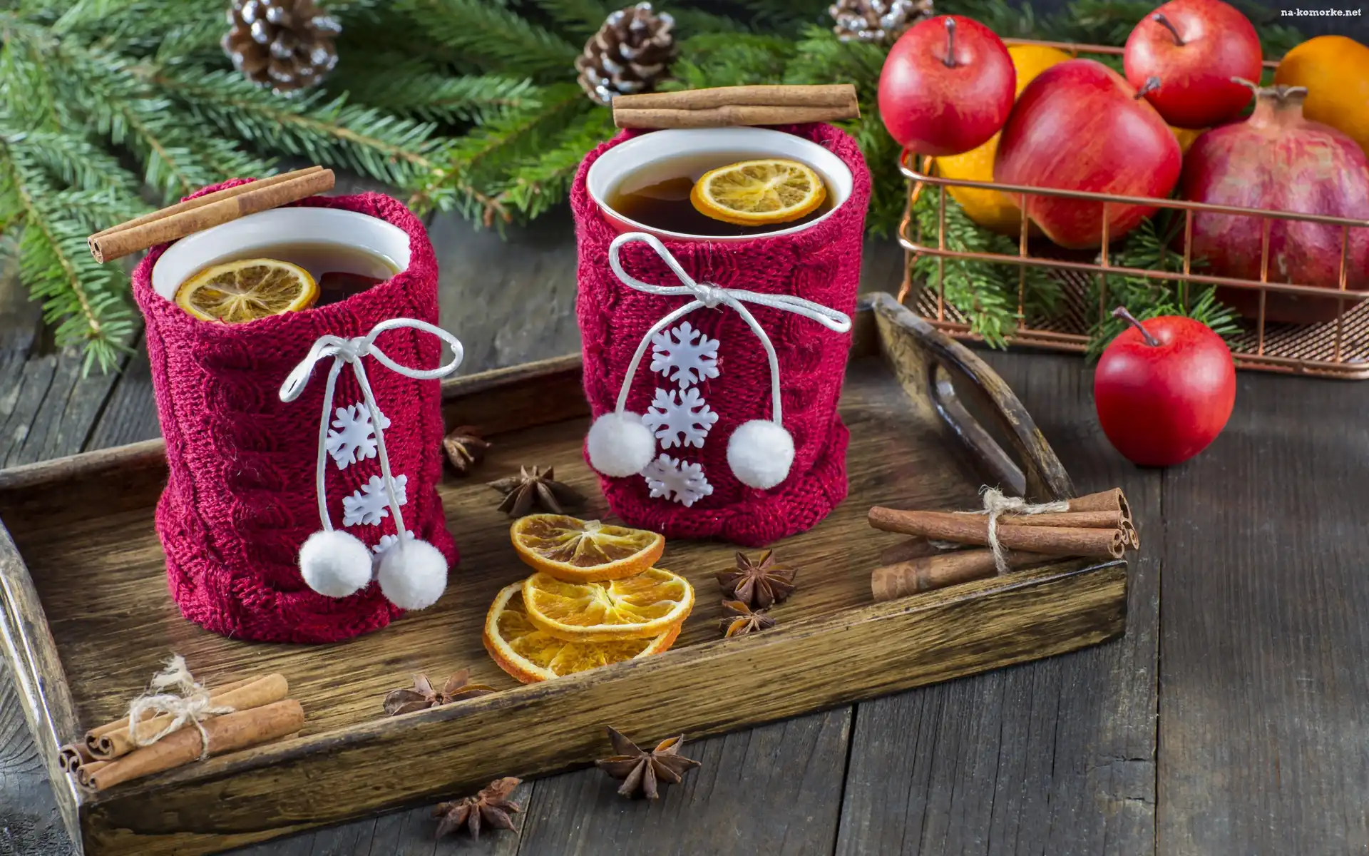 Herbata, Cytryna, Kompozycja, Cynamon, Kubki, Jabłka, Plasterki, Cytryny na Komórkę