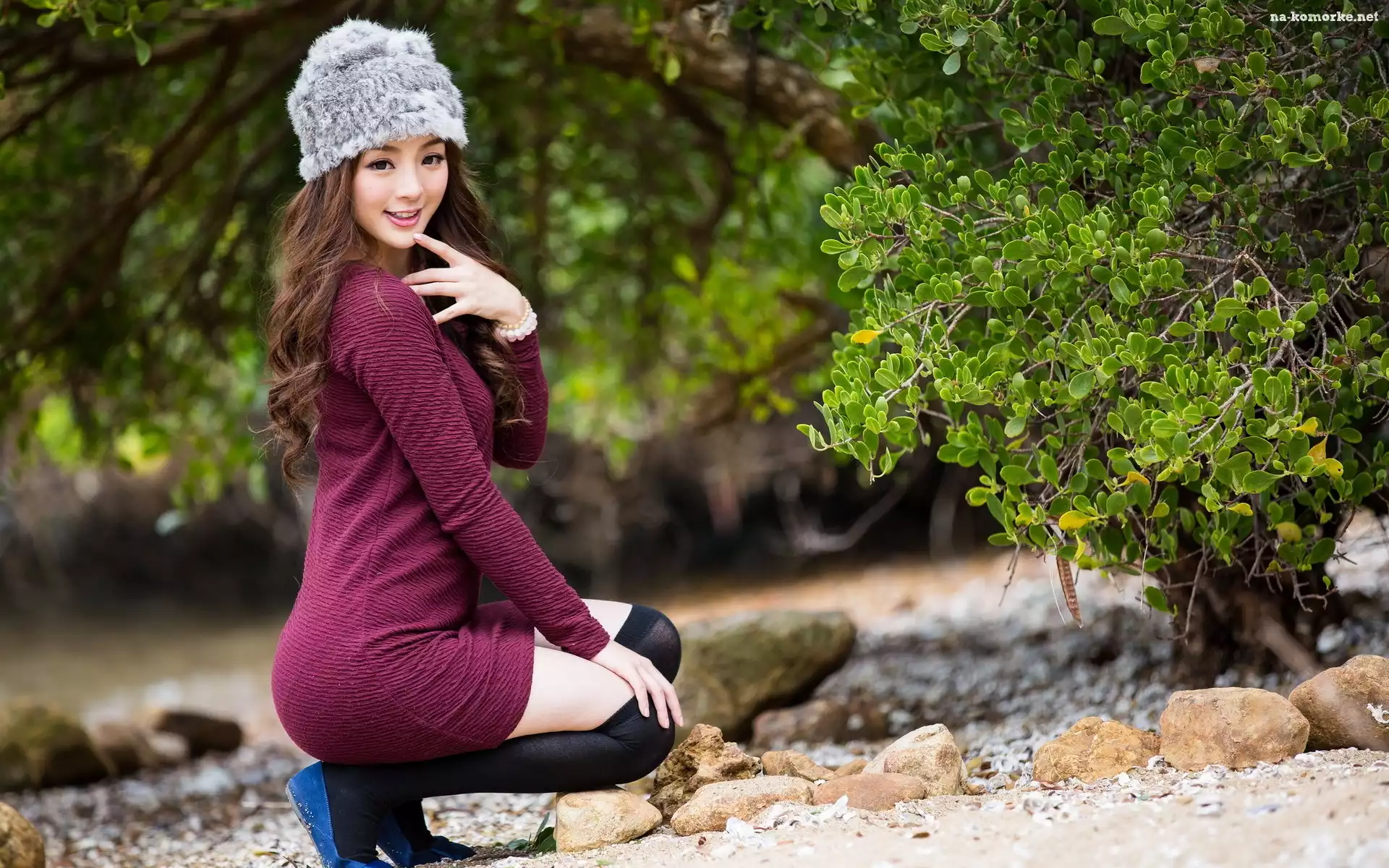 Czapka, Dziewczyna, Ładna, Ubranie, Azjatka, Bordowe na Komórkę