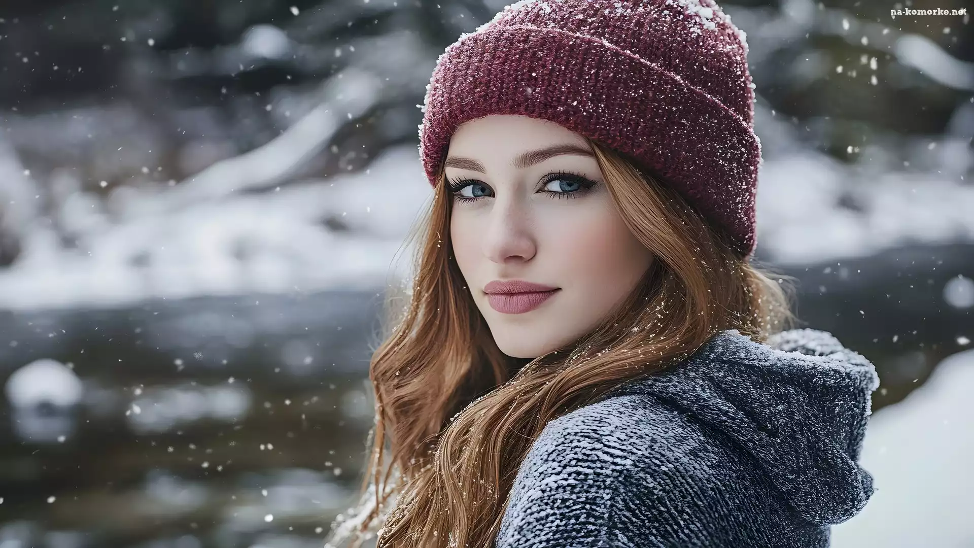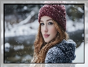 Długowłosa, Czapka, Sweter, Kobieta, Śnieg na Komórkę