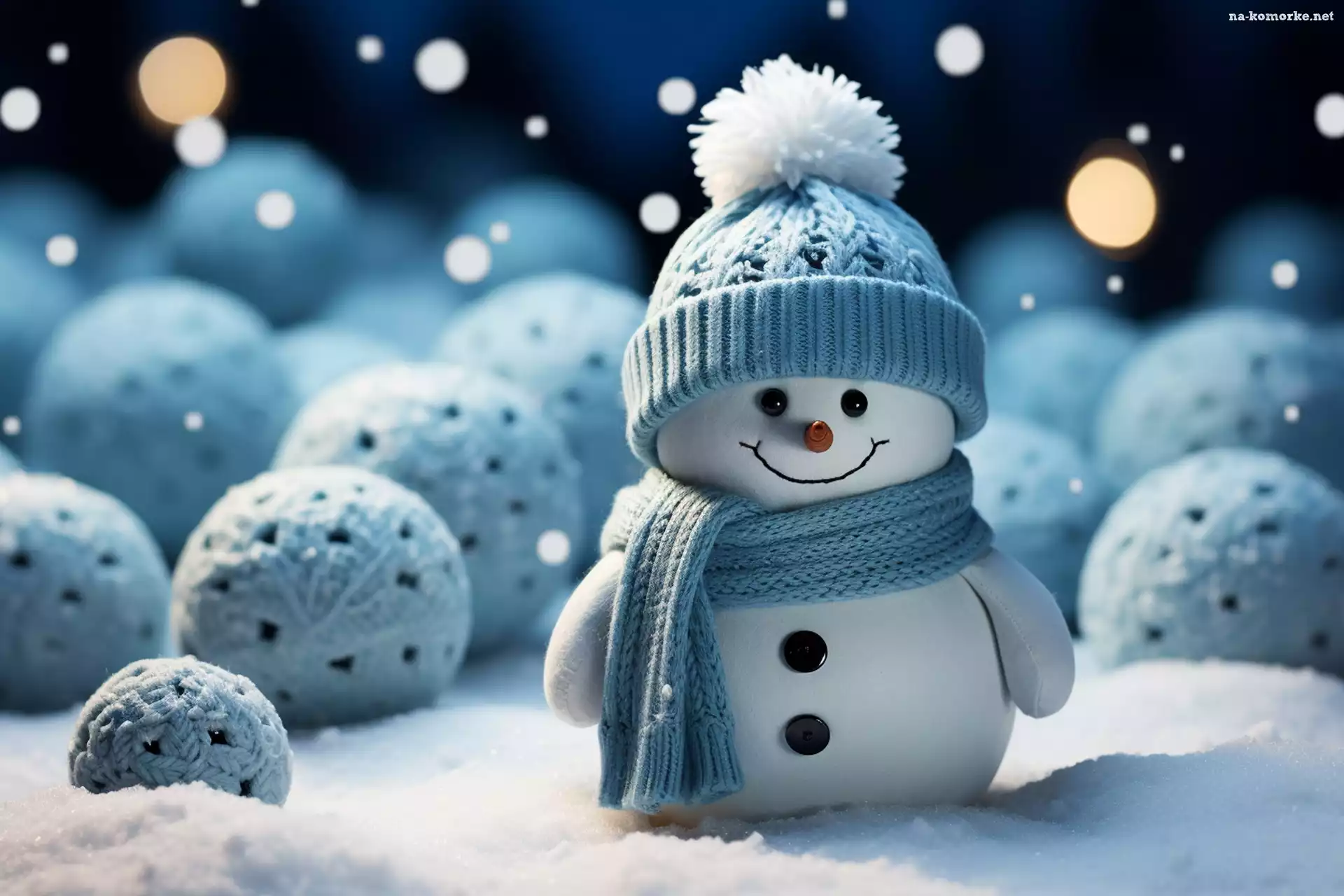 Bałwan, Czapka, Szalik, Niebieska, Grafika na Komórkę