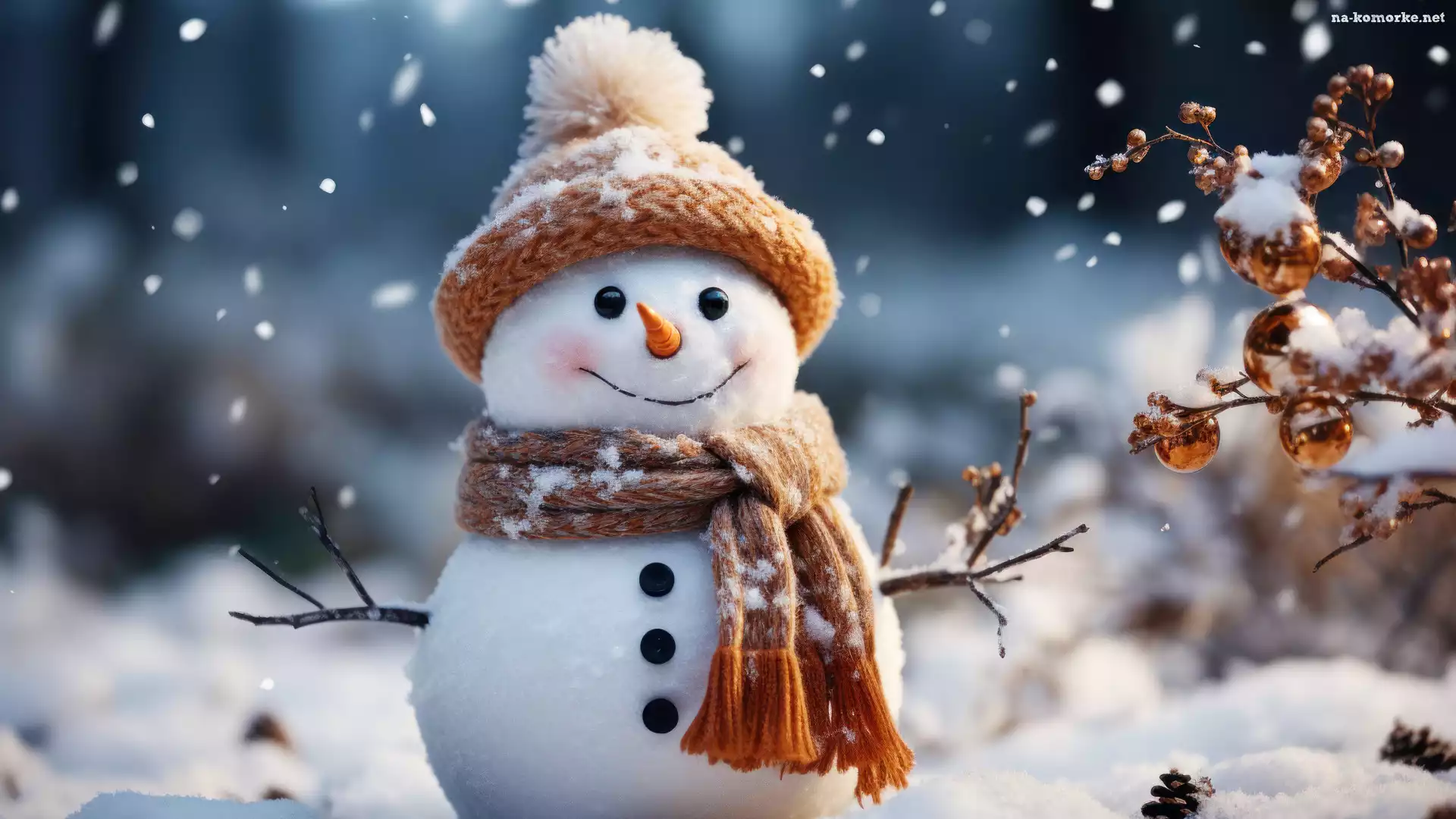 Zima, Czapka, Szalik, Bałwan, Śnieg na Komórkę