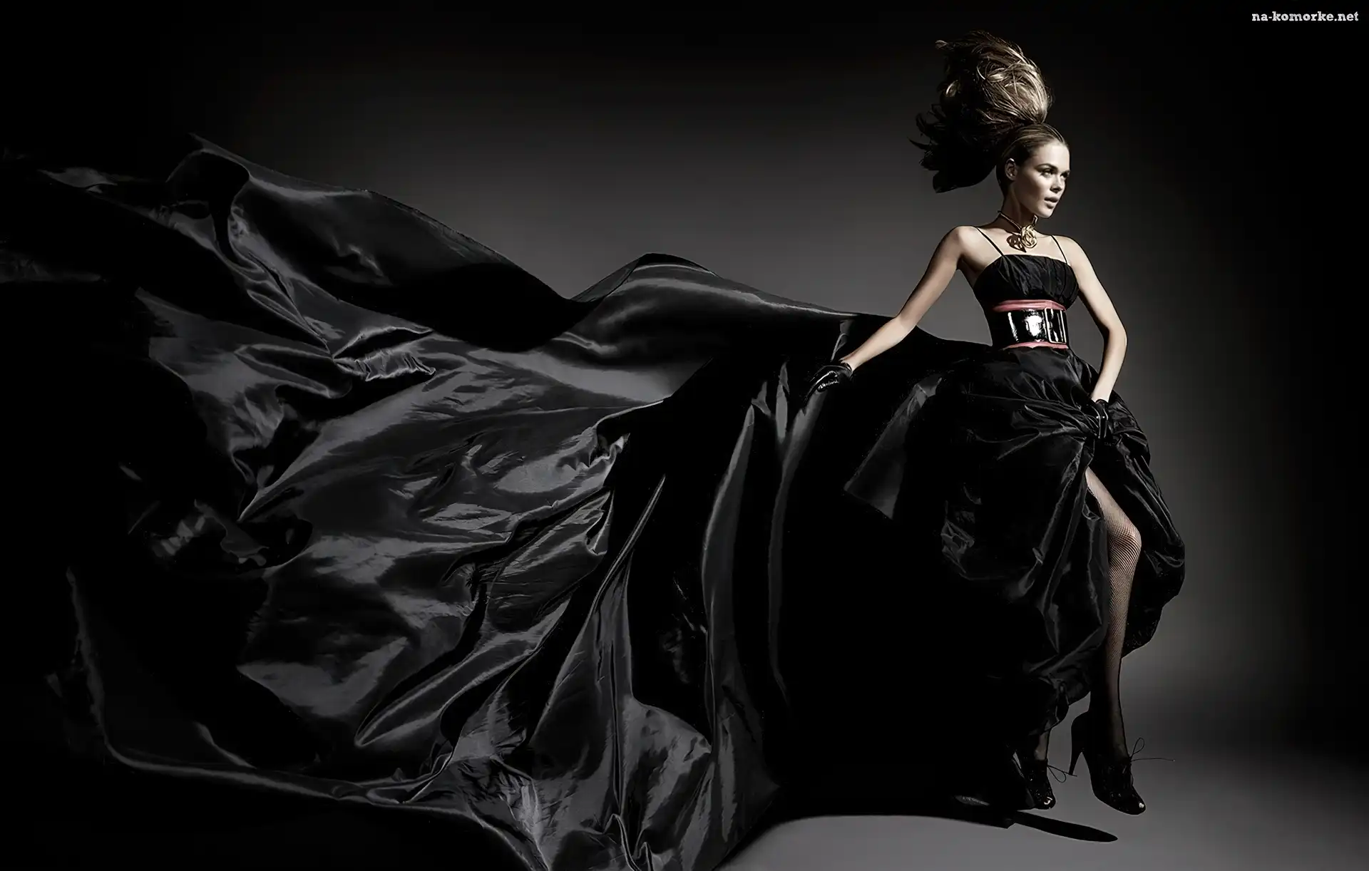 Kobieta, Czarna, Suknia na Komórkę