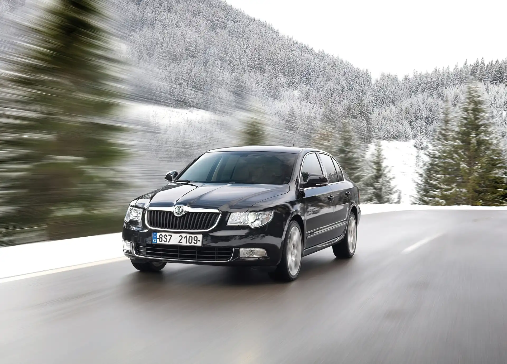 Czarna, Skoda Superb, Zima na Komórkę
