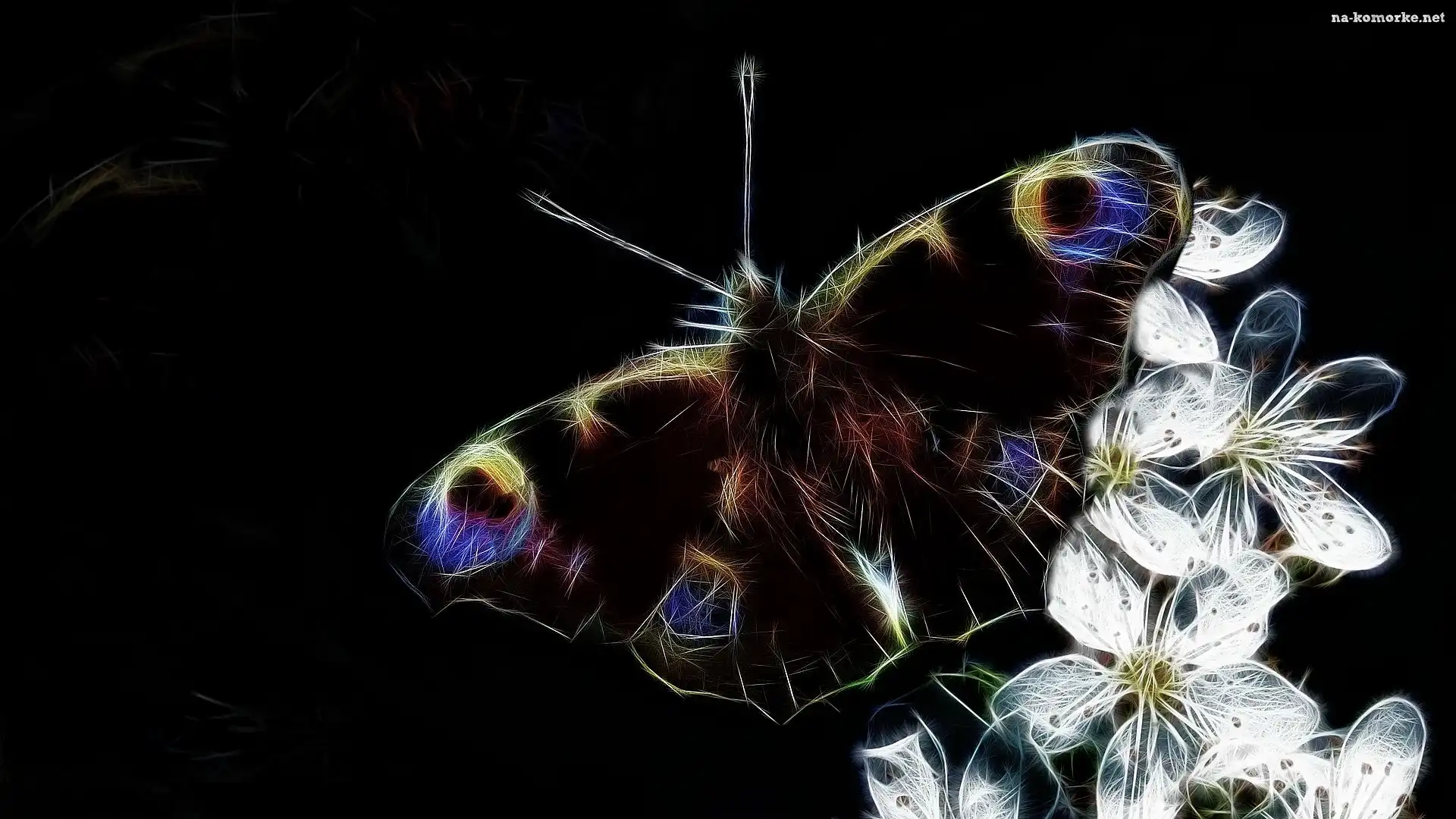 Czarne, Białe, Motyl, Fractalius, Kwiaty, Tło na Komórkę