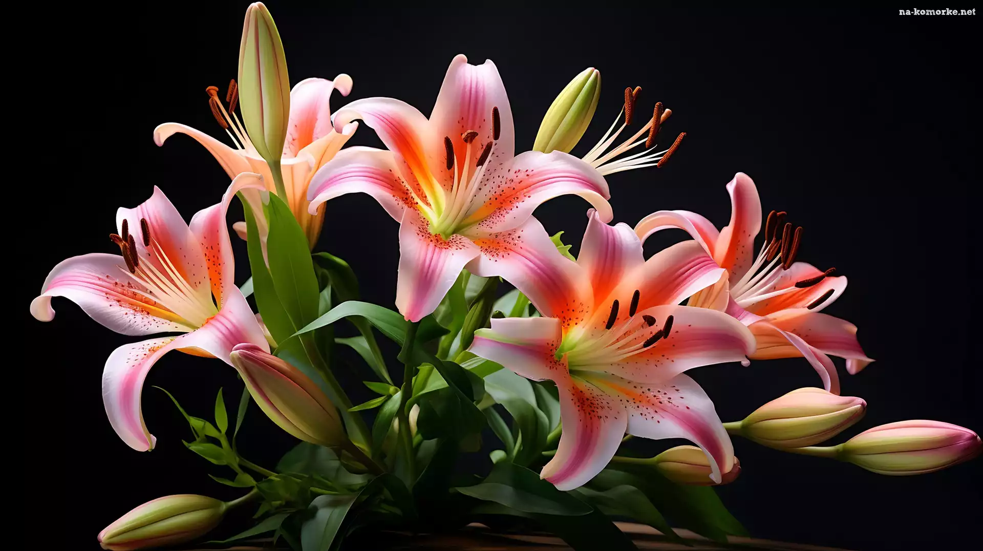 Kwiaty, Czarne, Tło, Lilie, Grafika na Komórkę