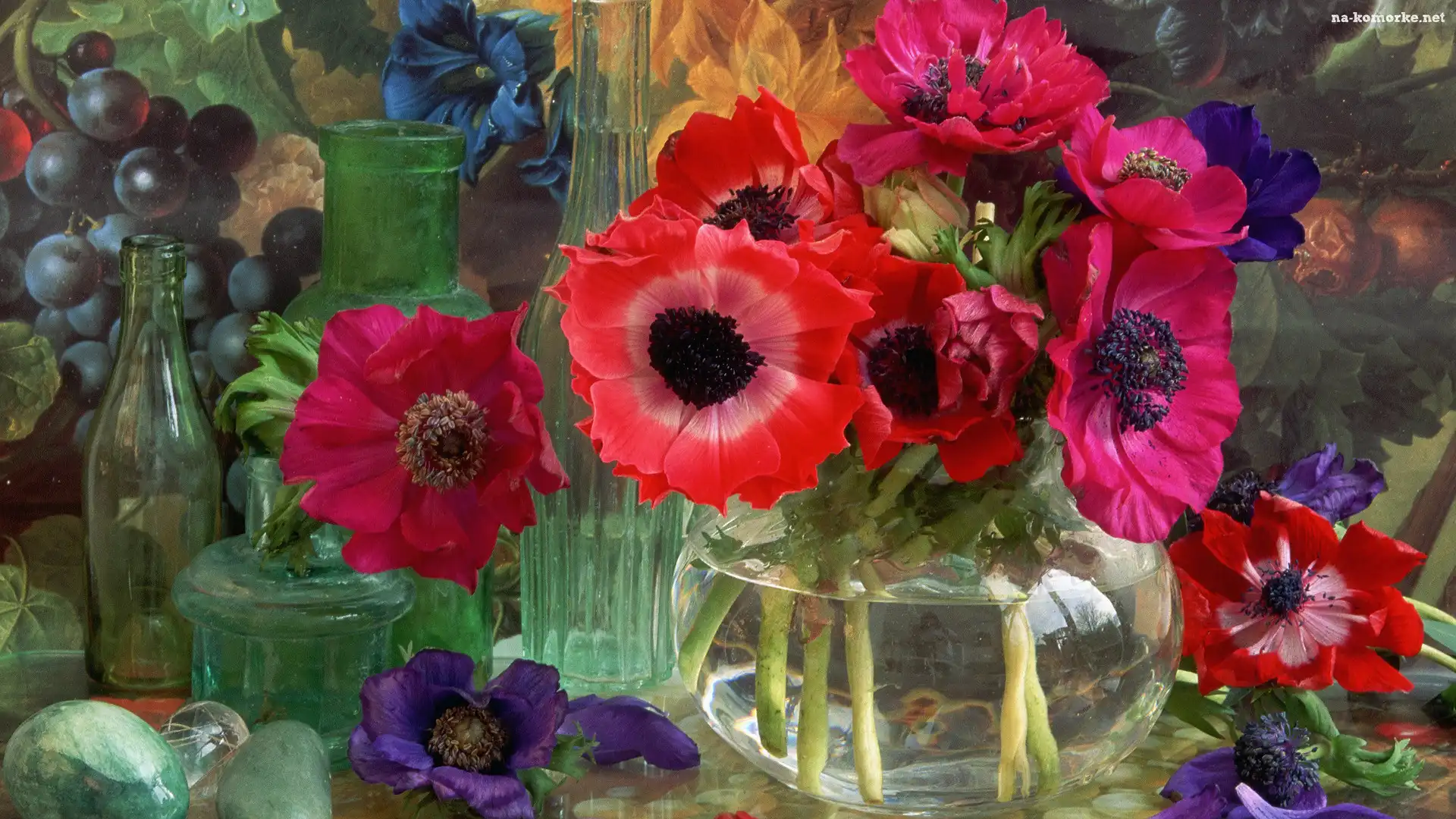 Czarne, Anemony, Czerwone, Dekoracja, Wazon, Winogrono na Komórkę