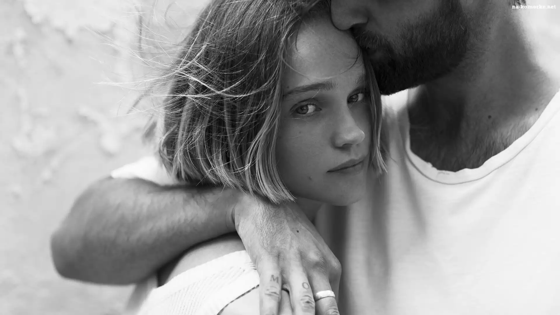 Czarno-białe, Para, Zakochanych, Kobieta, Mężczyzna na Komórkę