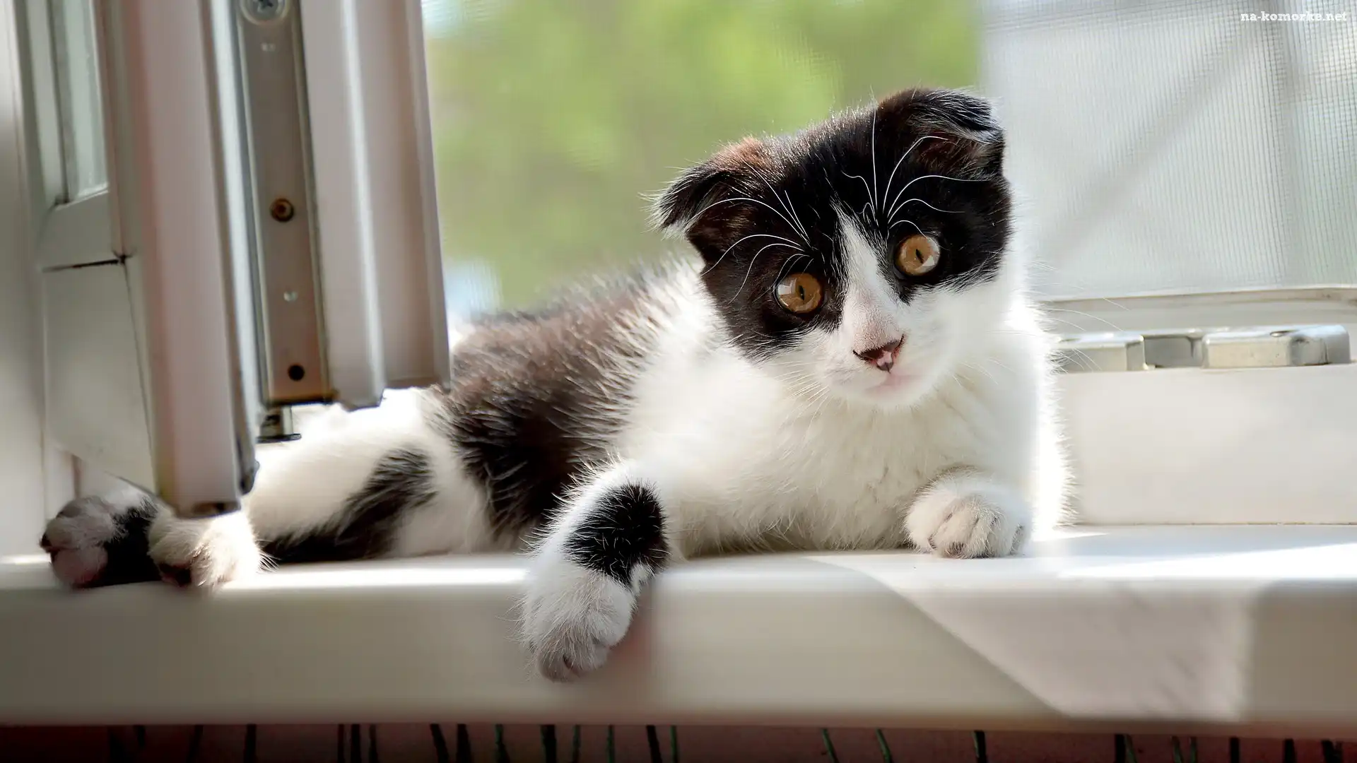 Czarno-biały, Okno, Kot, Parapet na Komórkę