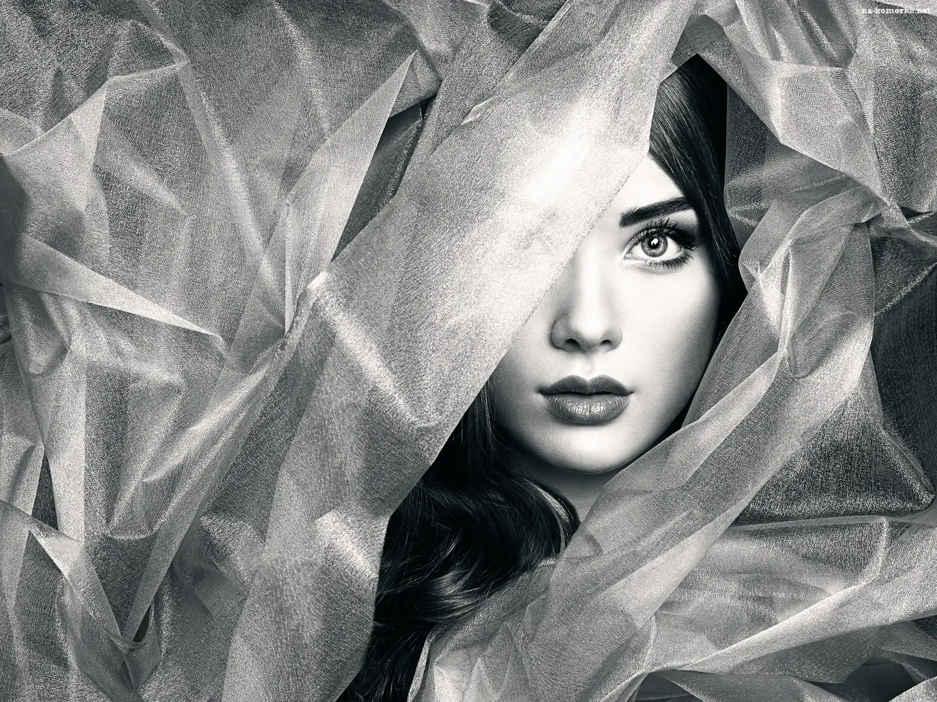 Czarno, Kobieta, Piękna, Zdjęcie, Tkanina, Białe na Komórkę