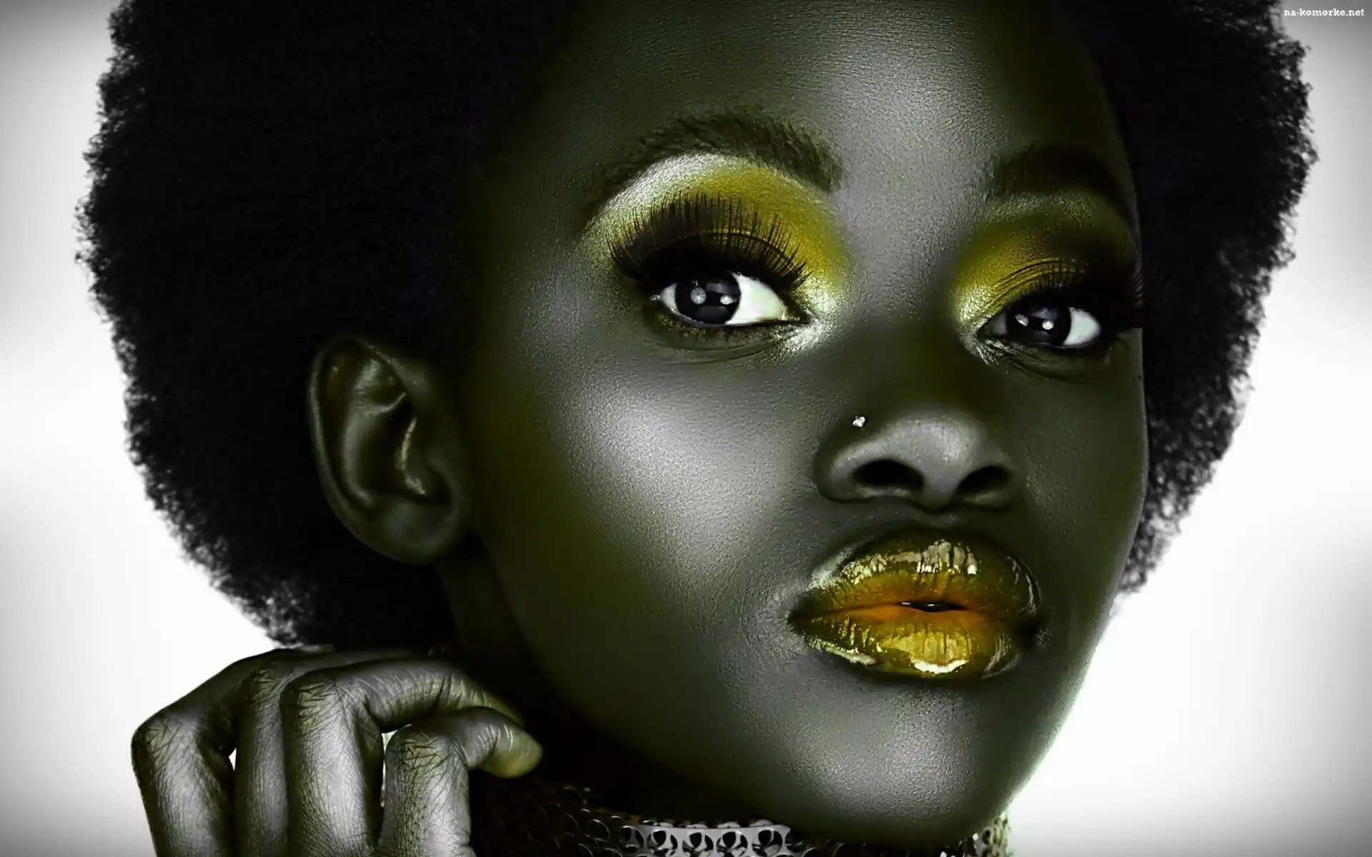 Czarnoskóra, Makijaż, Modelka, Złoty na Komórkę