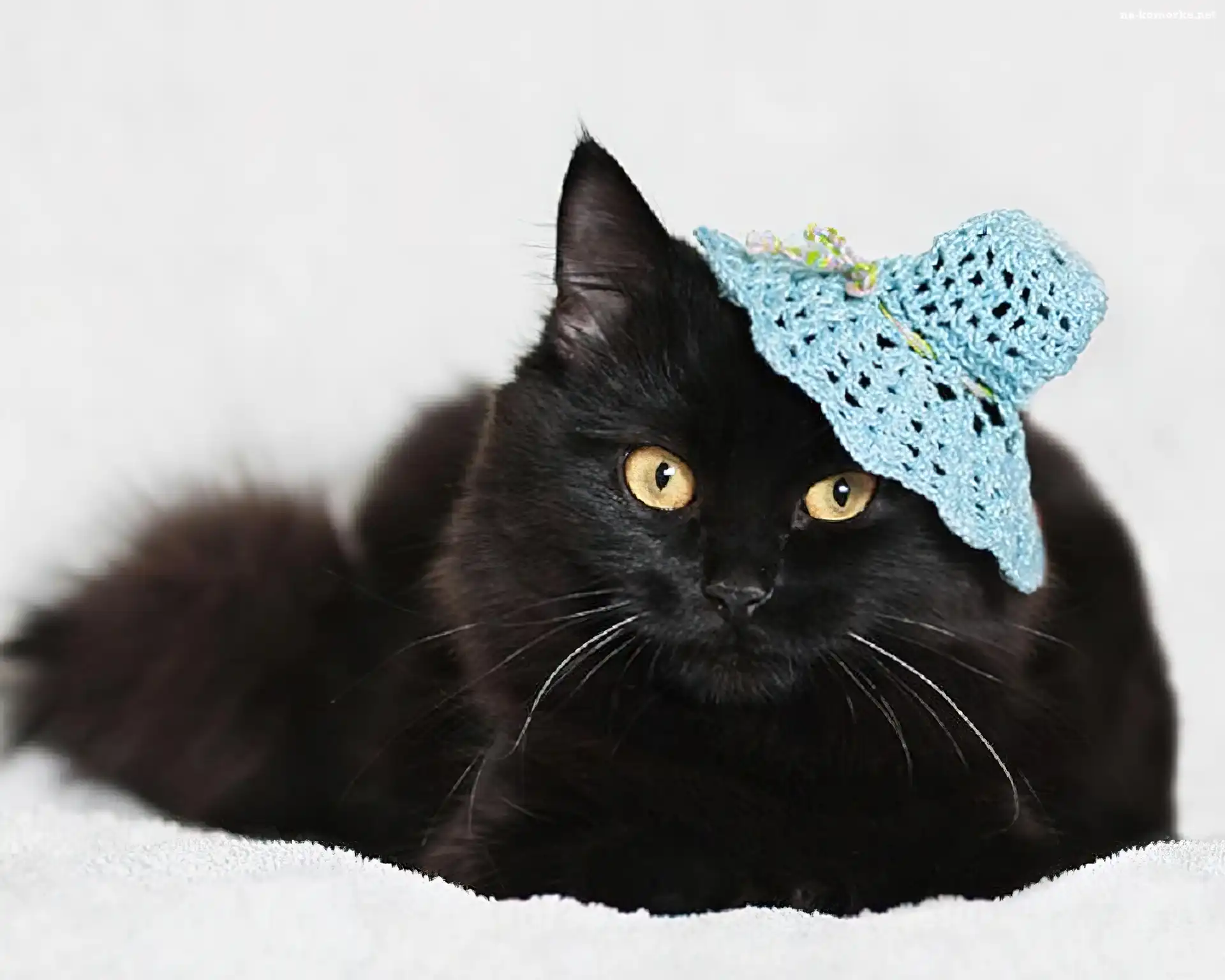Niebieski, Kapelusik, Czarny, Kot na Komórkę