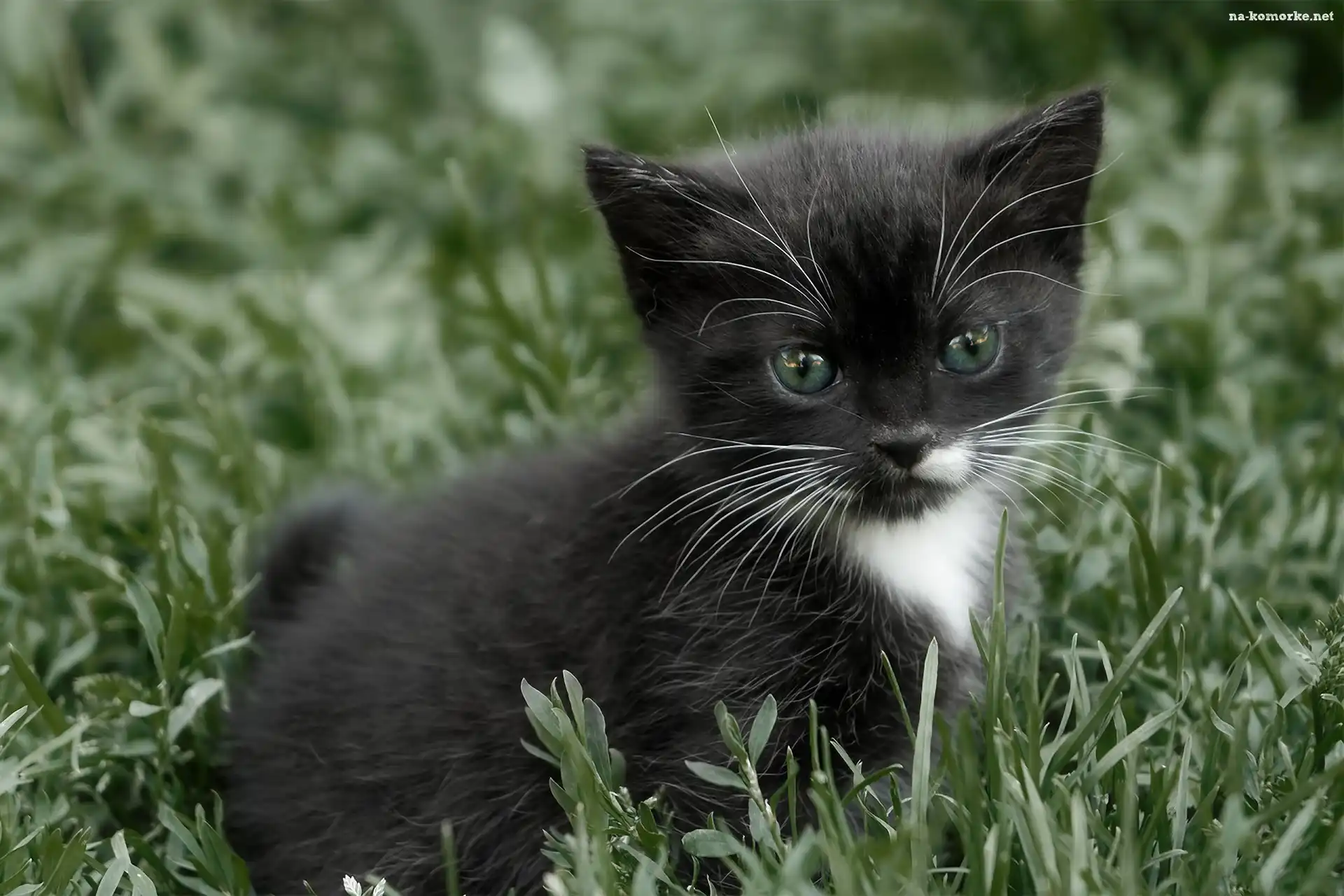 Czarny, Trawa, Kotek, Łąka na Komórkę
