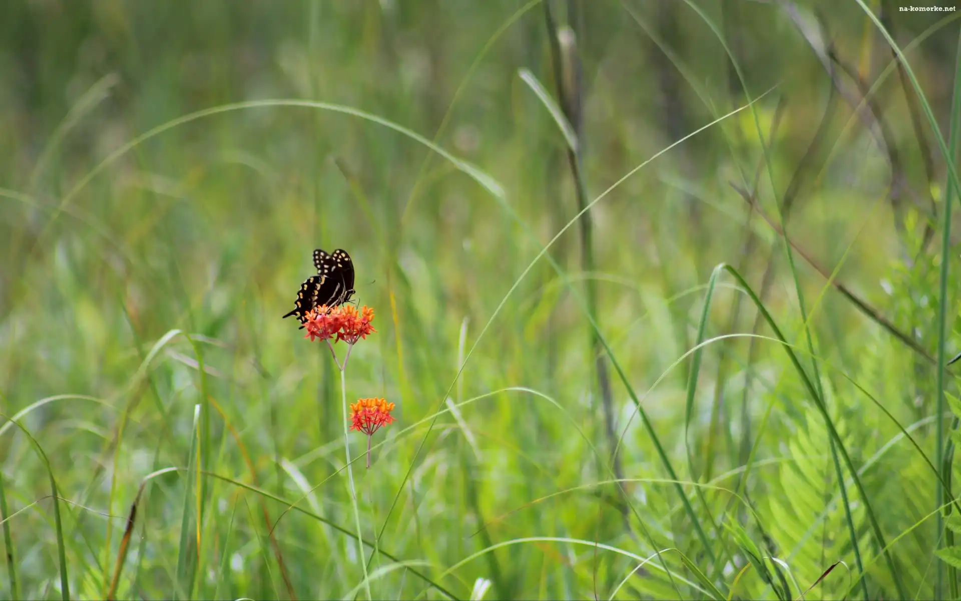 Czarny, Trawa, Motyl, Kwiat na Komórkę
