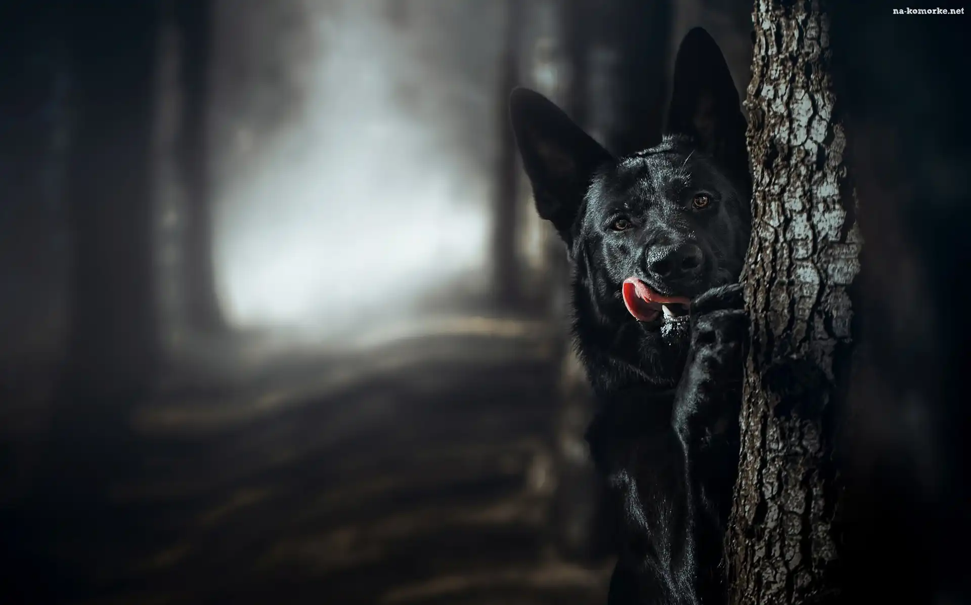 Czarny, Drzewo, Owczarek niemiecki, Las na Komórkę