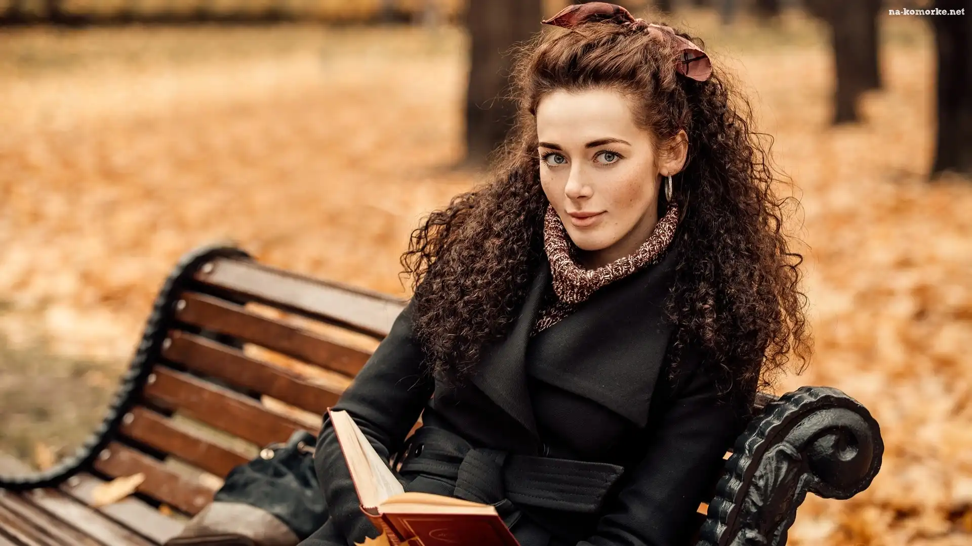 Czarny, Kręcone, Dziewczyna, Ławka, Włosy, Płaszcz na Komórkę