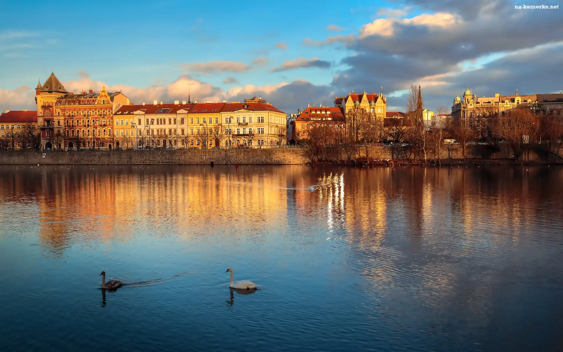 Czechy, Łabędzie, Praga, Rzeka na Komórkę