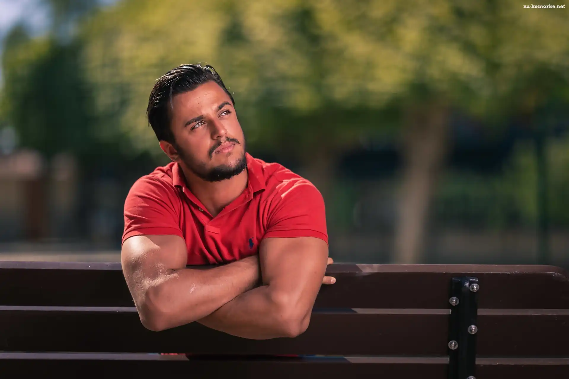 Ławka, Mężczyzna, Broda, Czerwona, Koszulka na Komórkę