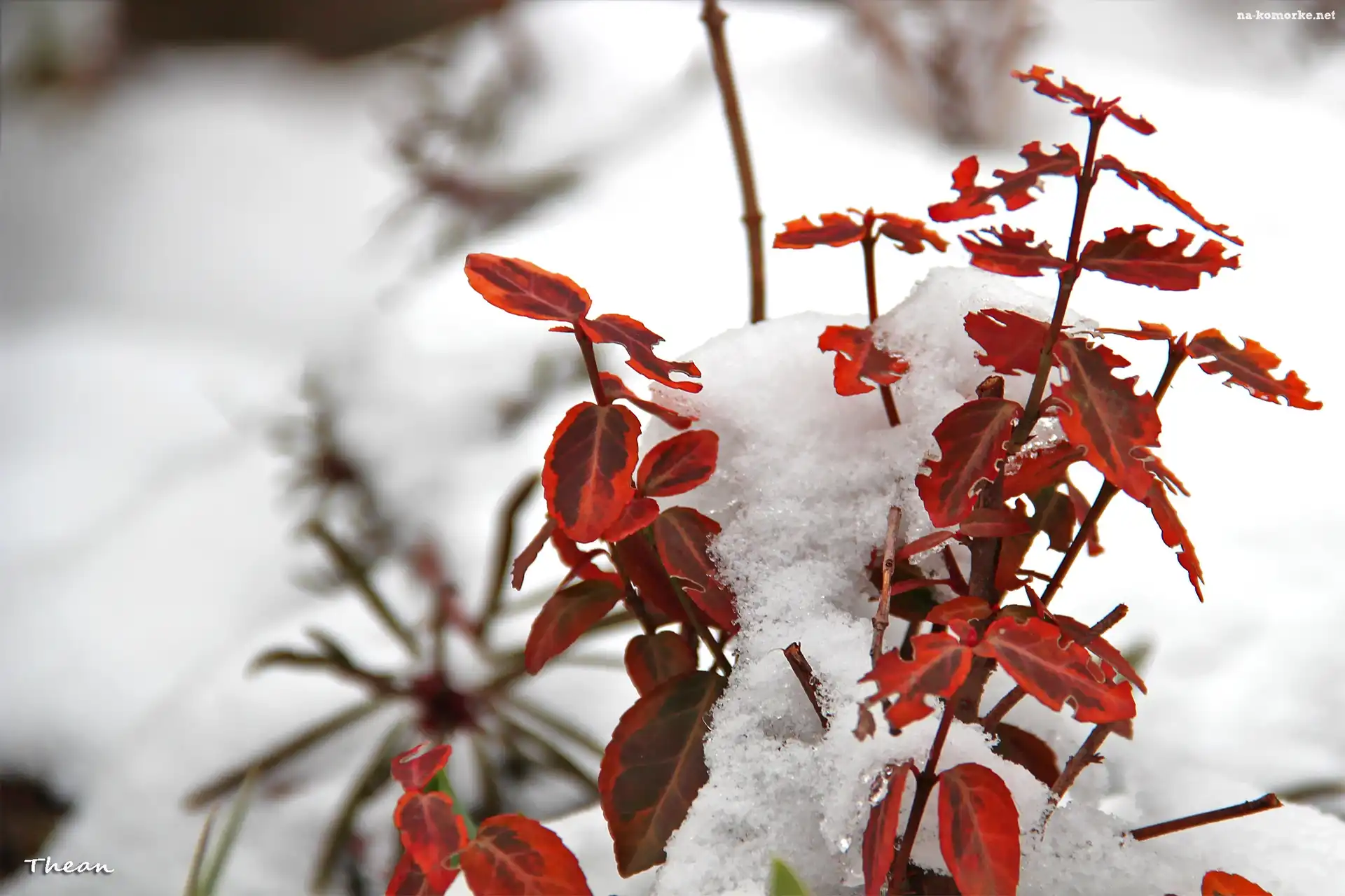 Czerwona, Zima, Roślina, Śnieg na Komórkę