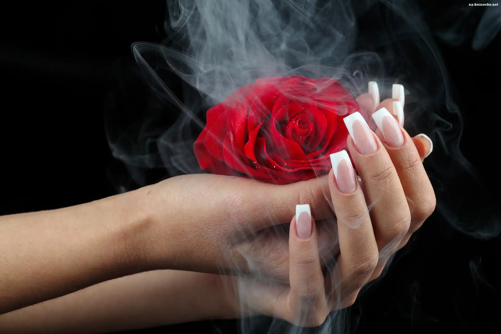 Czerwona, Dym, Róża, Dłonie na Komórkę