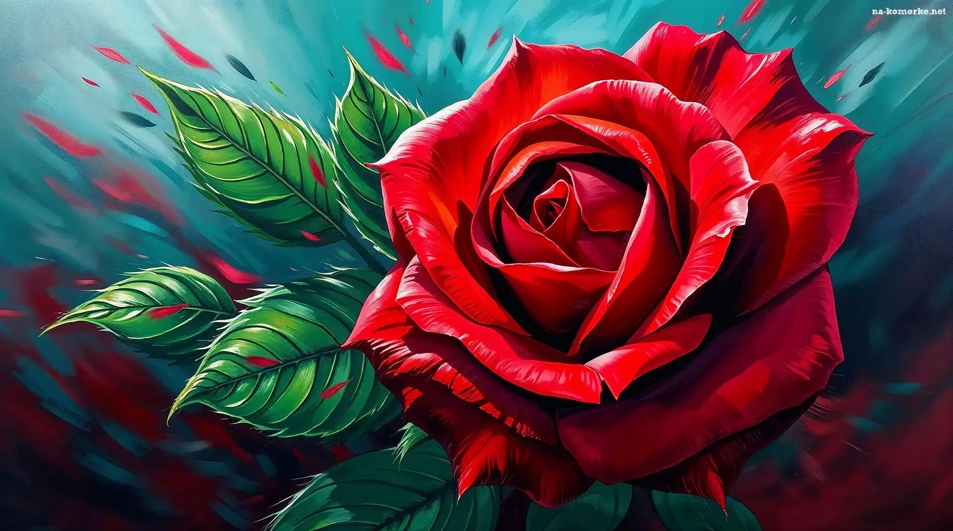 Róża, Listki, Grafika, Czerwona na Komórkę
