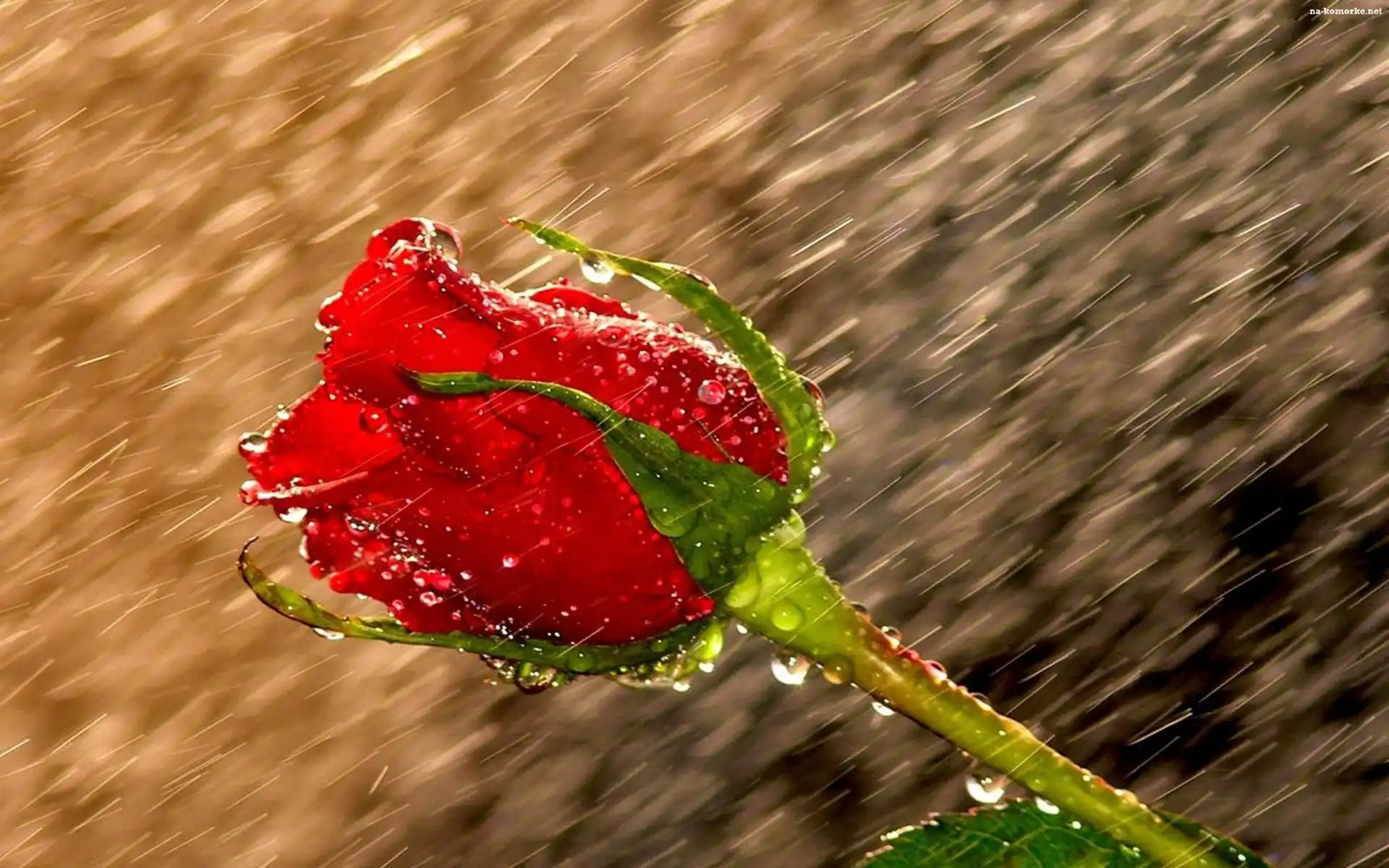 Czerwona, Krople, Róża, Deszcz na Komórkę