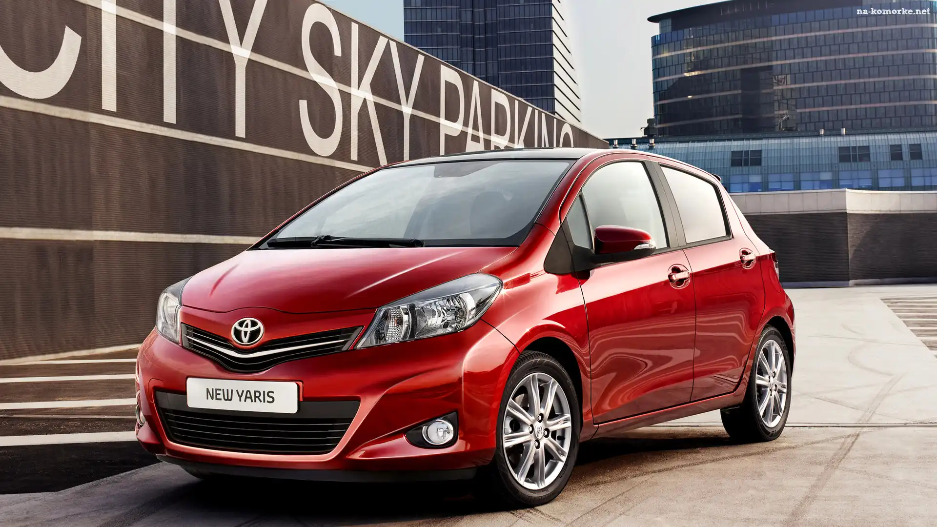Czerwona, Toyota Yaris, Przód na Komórkę