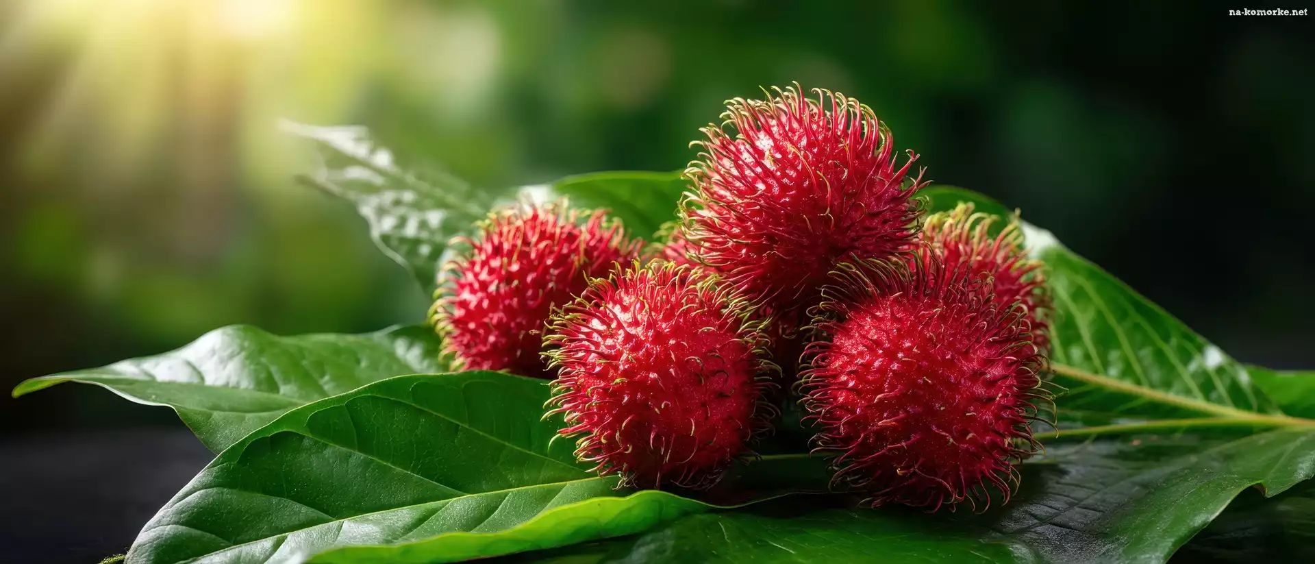 Rambutan, Owoce, Liście, Czerwone, Grafika AI na Komórkę