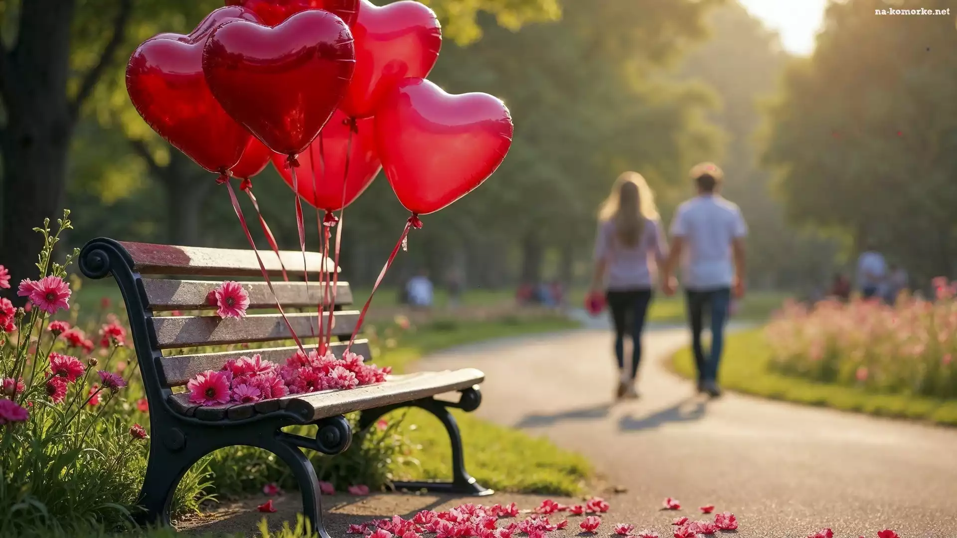 Balony, Kwiaty, Ławka, Czerwone na Komórkę