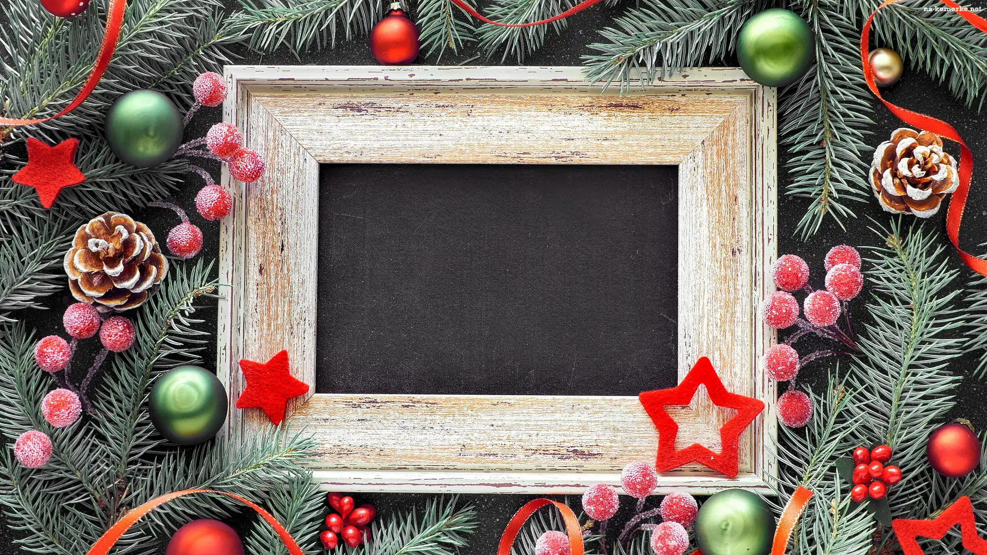 Ramka, Świąteczna, Bombki, Gałązki, Gwiazdki, Dekoracja, Jagody, Szyszki, Czerwone na Komórkę