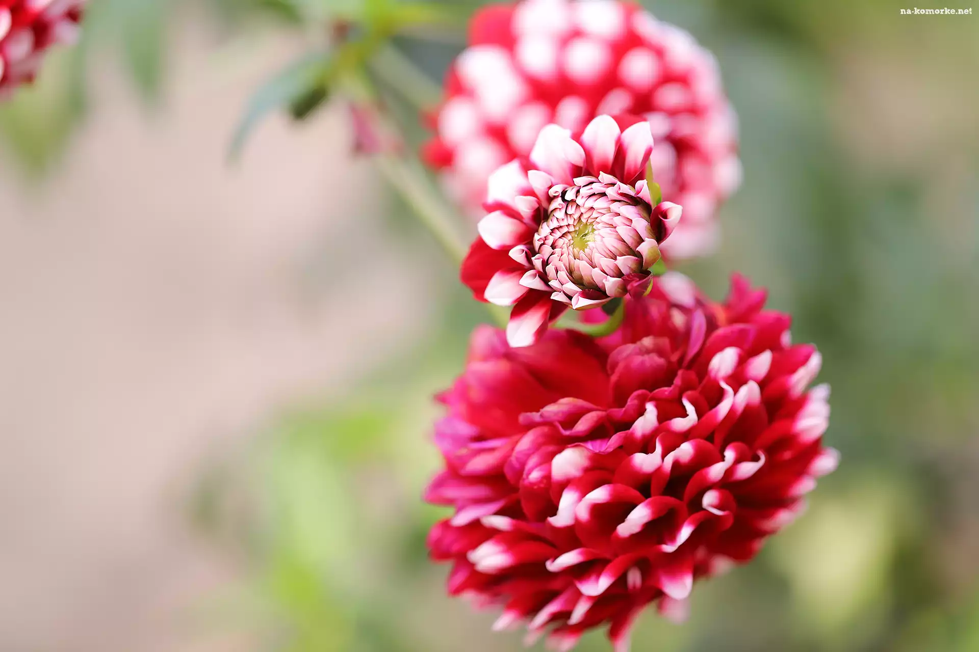 Dalie, Kwiaty, Biało czerwone na Komórkę