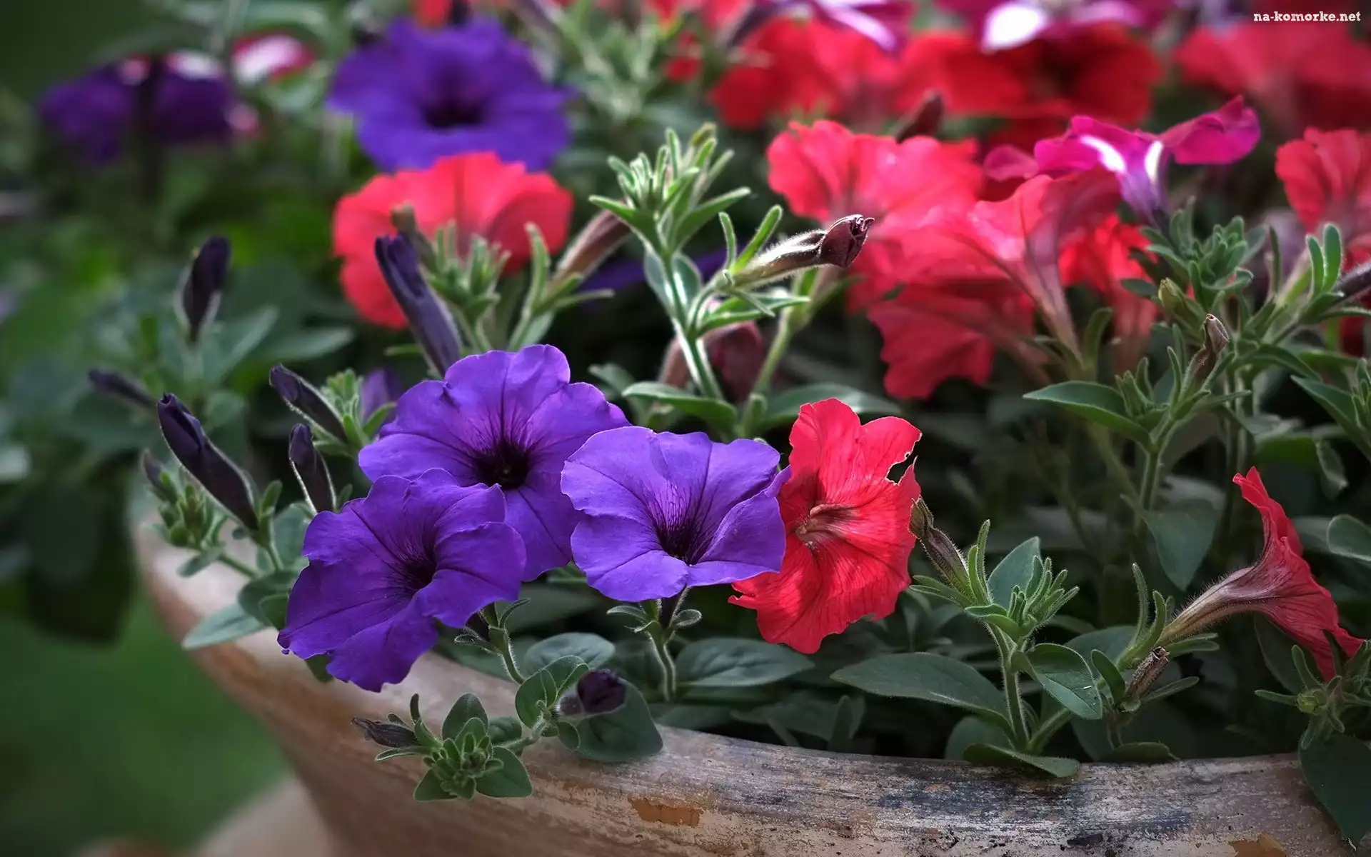 Czerwone, Donica, Fioletowe, Petunie na Komórkę