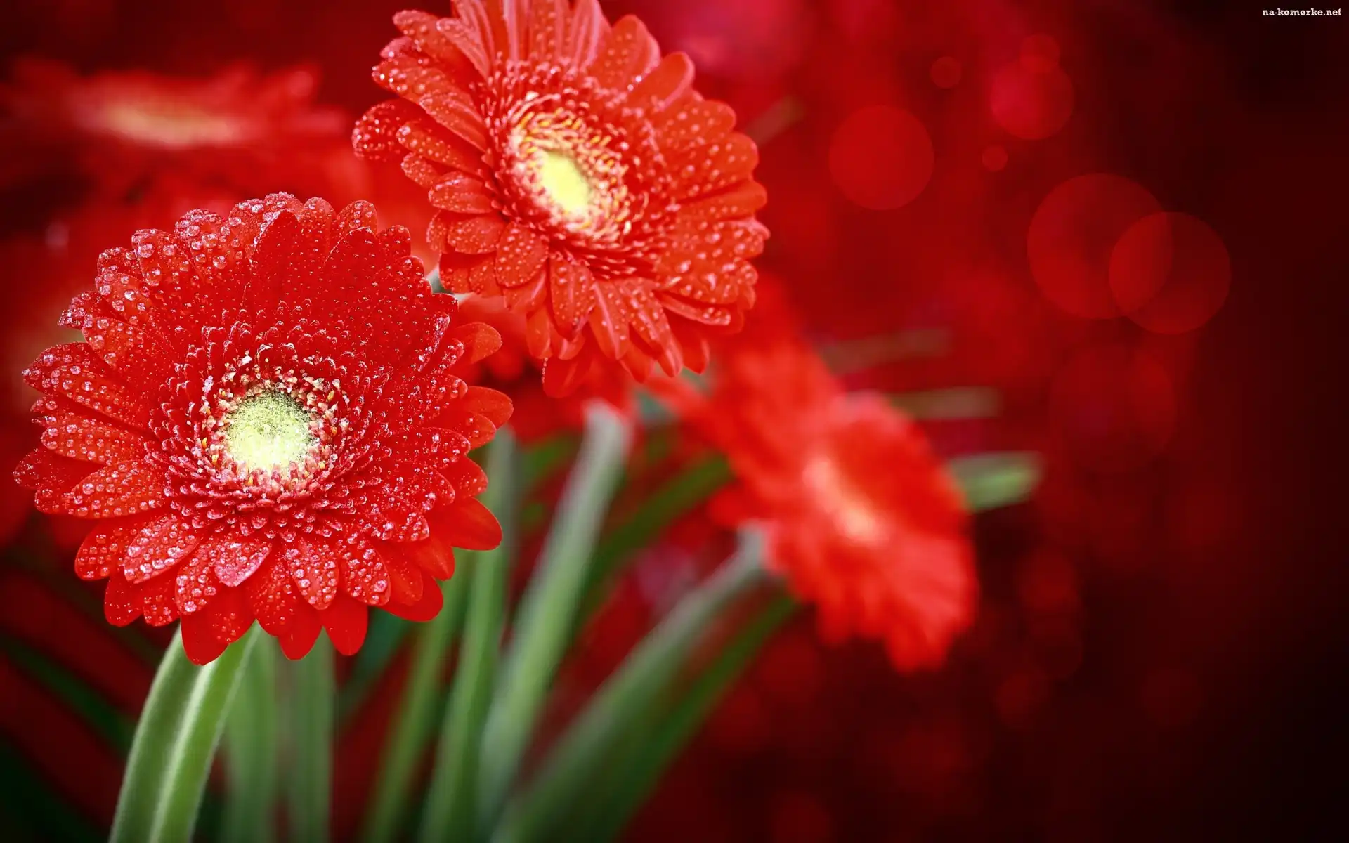 Czerwone, Wody, Gerbery, Krople na Komórkę