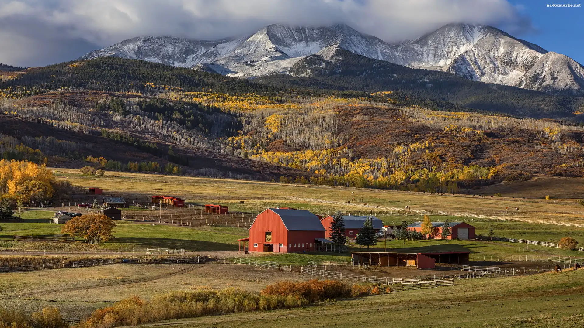 Gospodarstwo, Stodoły, Stany Zjednoczone, Czerwone, Kolorado, Basalt, Farma, Góry Skaliste, Góra Mount Sopris, Jesień na Komórkę |