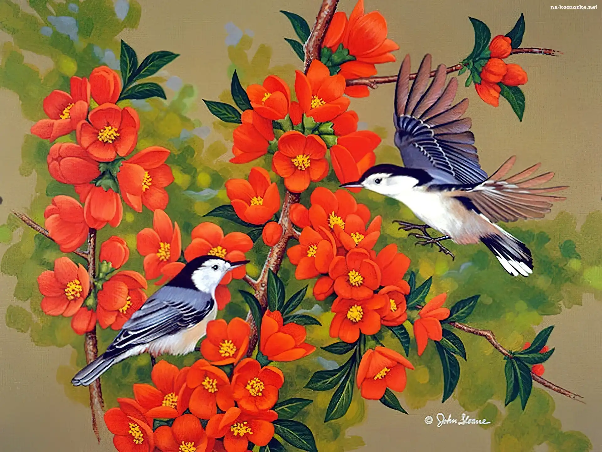Czerwone, Ptaki, Kwiatki, Dwa na Komórkę