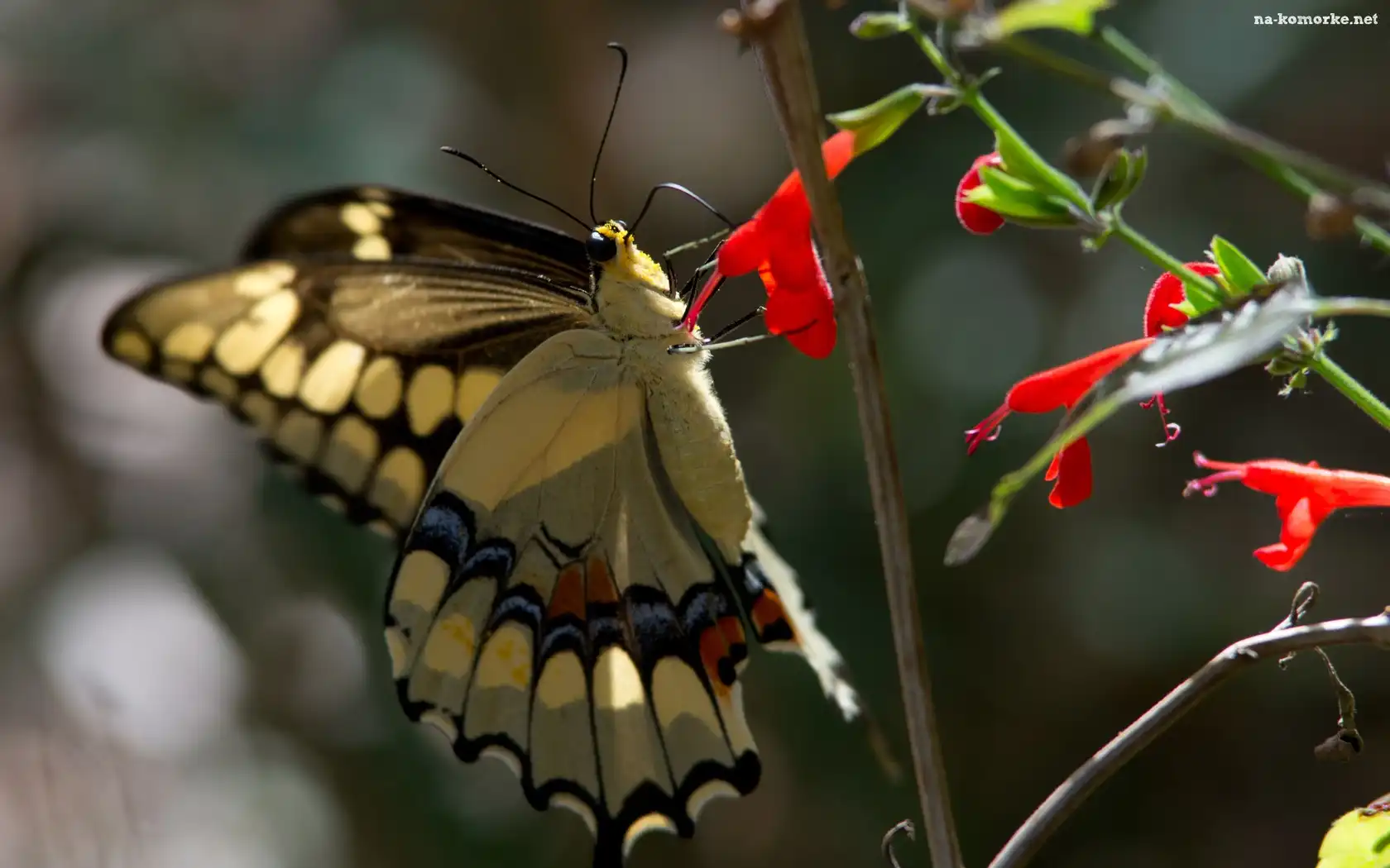 Czerwone, Motyl, Kwiatuszki, Roślinka na Komórkę