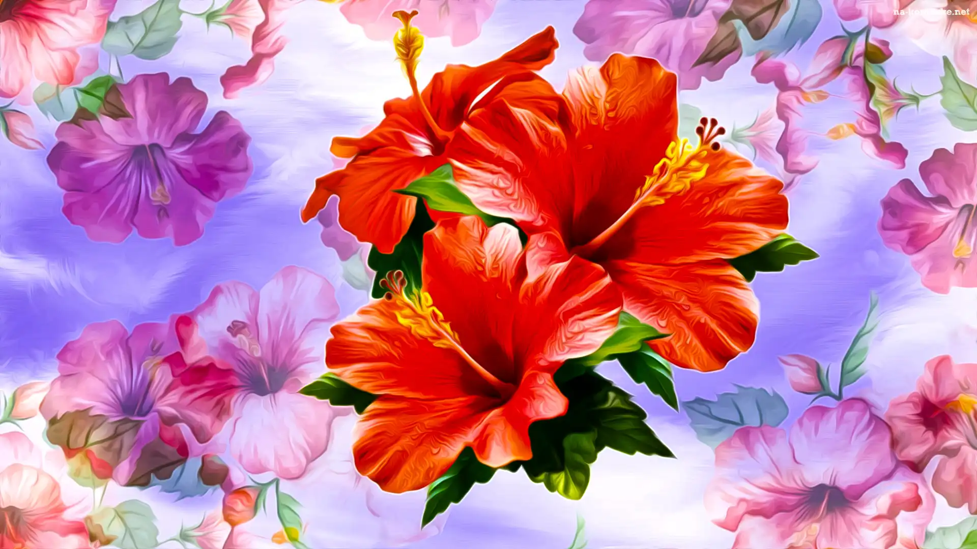 Czerwone, Grafika, Kwiaty, Hibiskusy na Komórkę