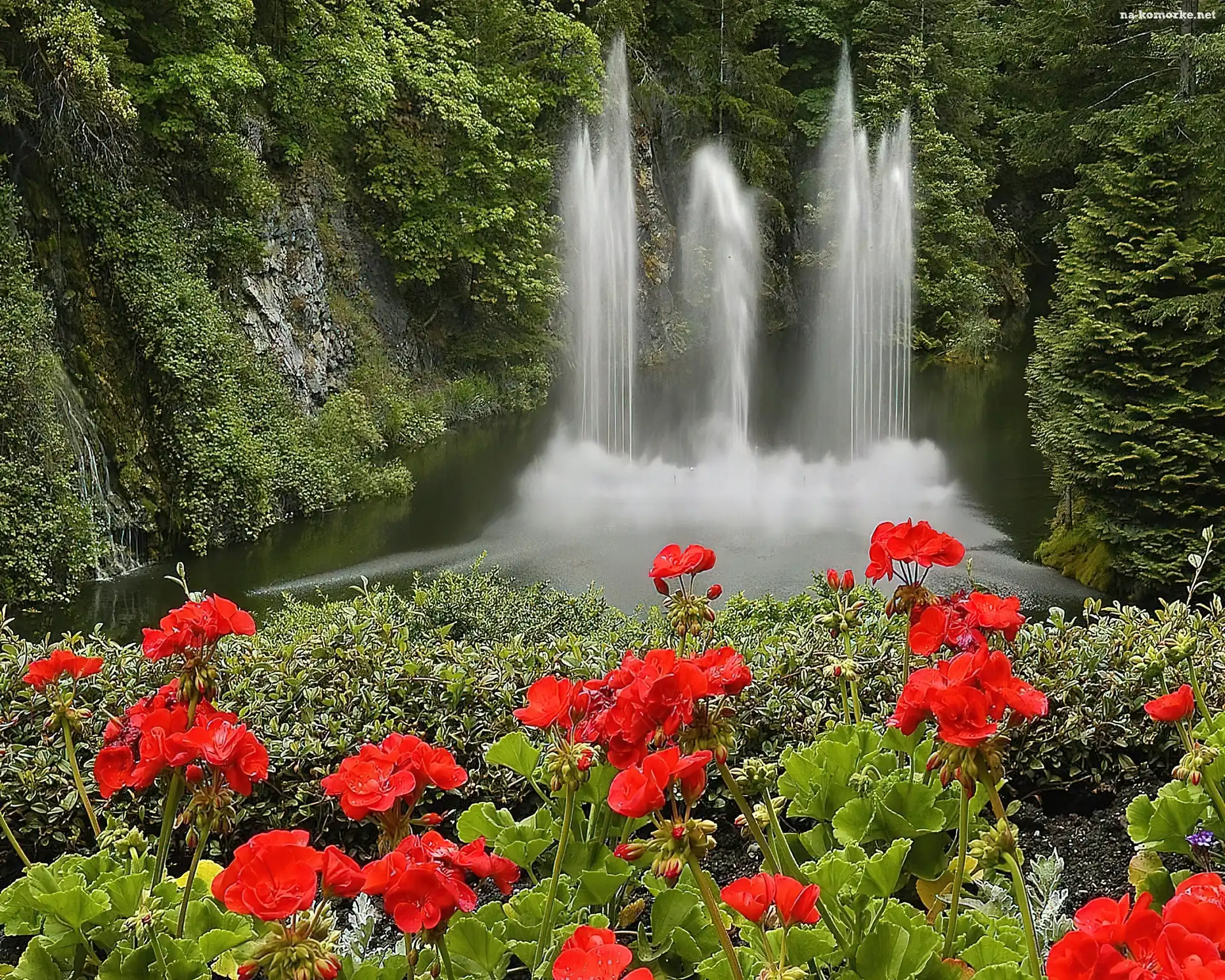 Czerwone, Las, Kwiaty, Wodospad na Komórkę