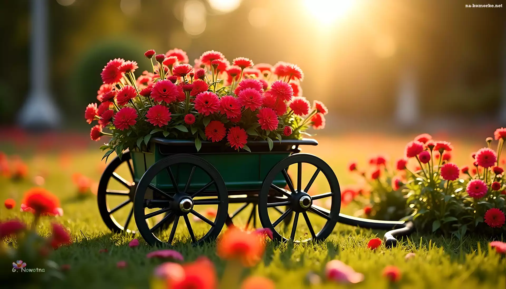 Kwiaty, Grafika, Wózek, Czerwone na Komórkę