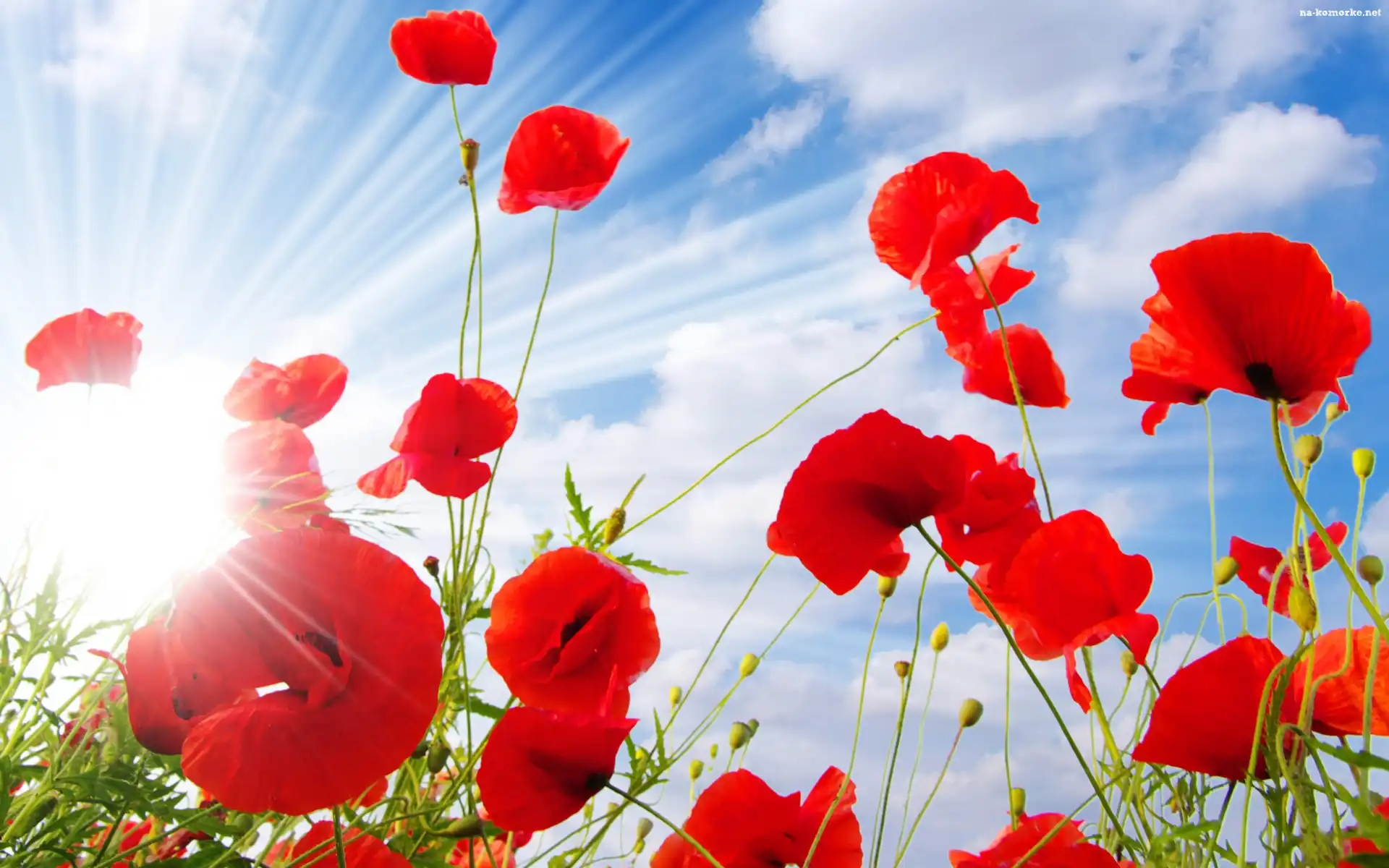 Czerwone, Słońca, Maki, Promienie na Komórkę