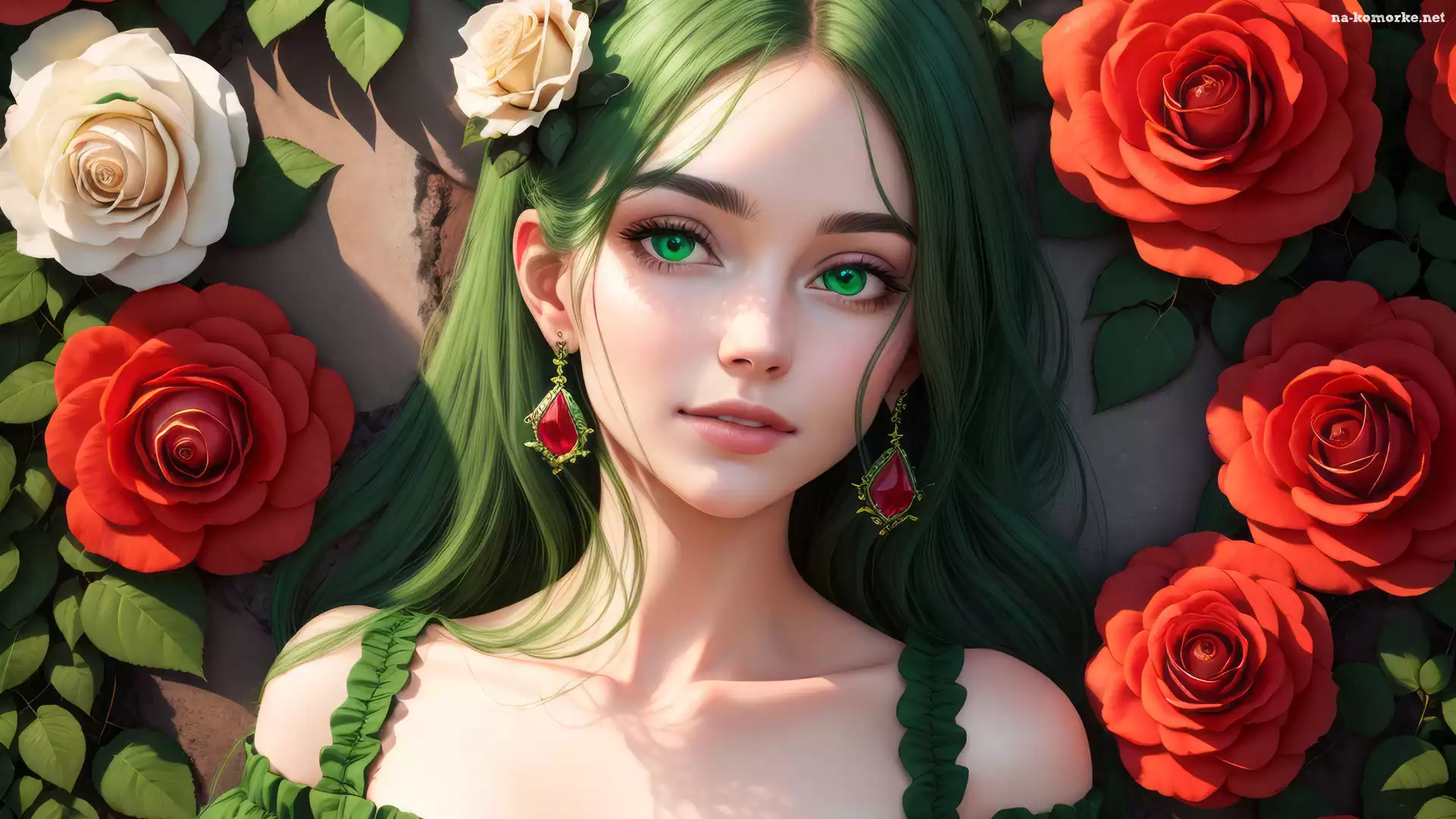 Zielonooka, Czerwone, Róże, Dziewczyna, Anime na Komórkę