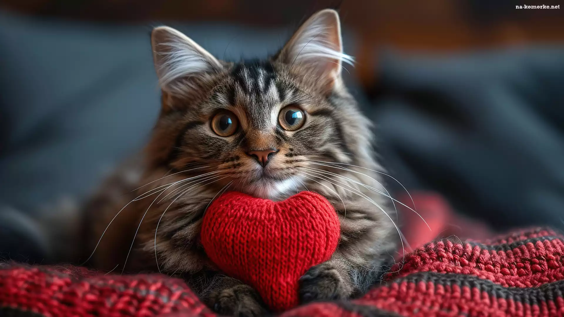 Szary, Czerwone, Serce, Kot, Koc na Komórkę