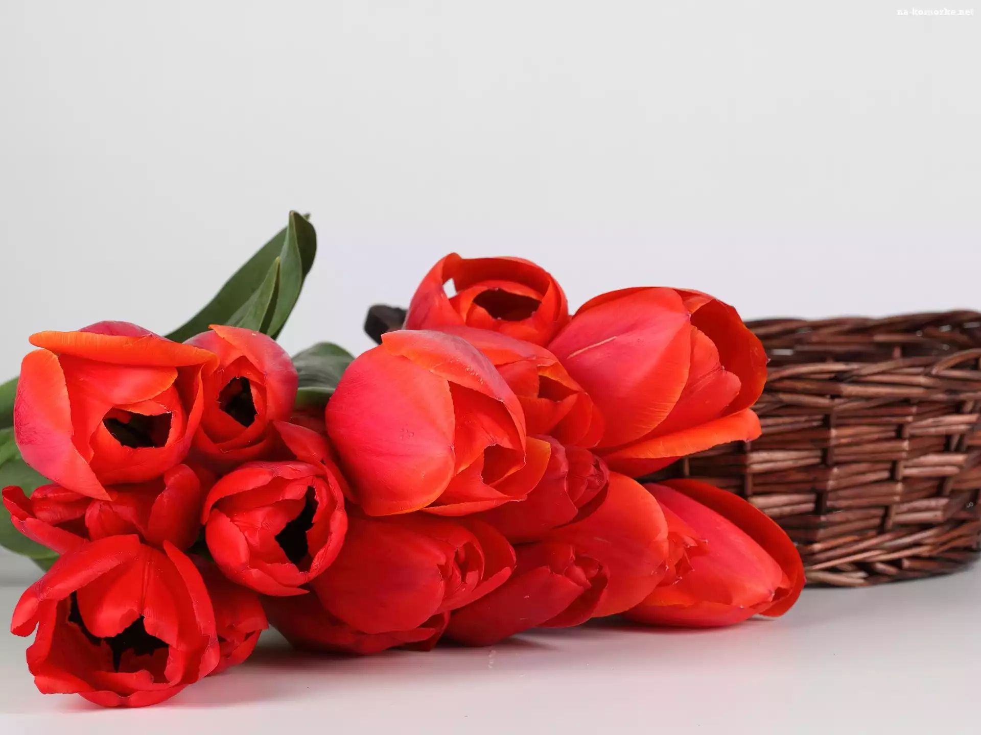 Wiklinowy, Kosz, Czerwone, Tulipany na Komórkę