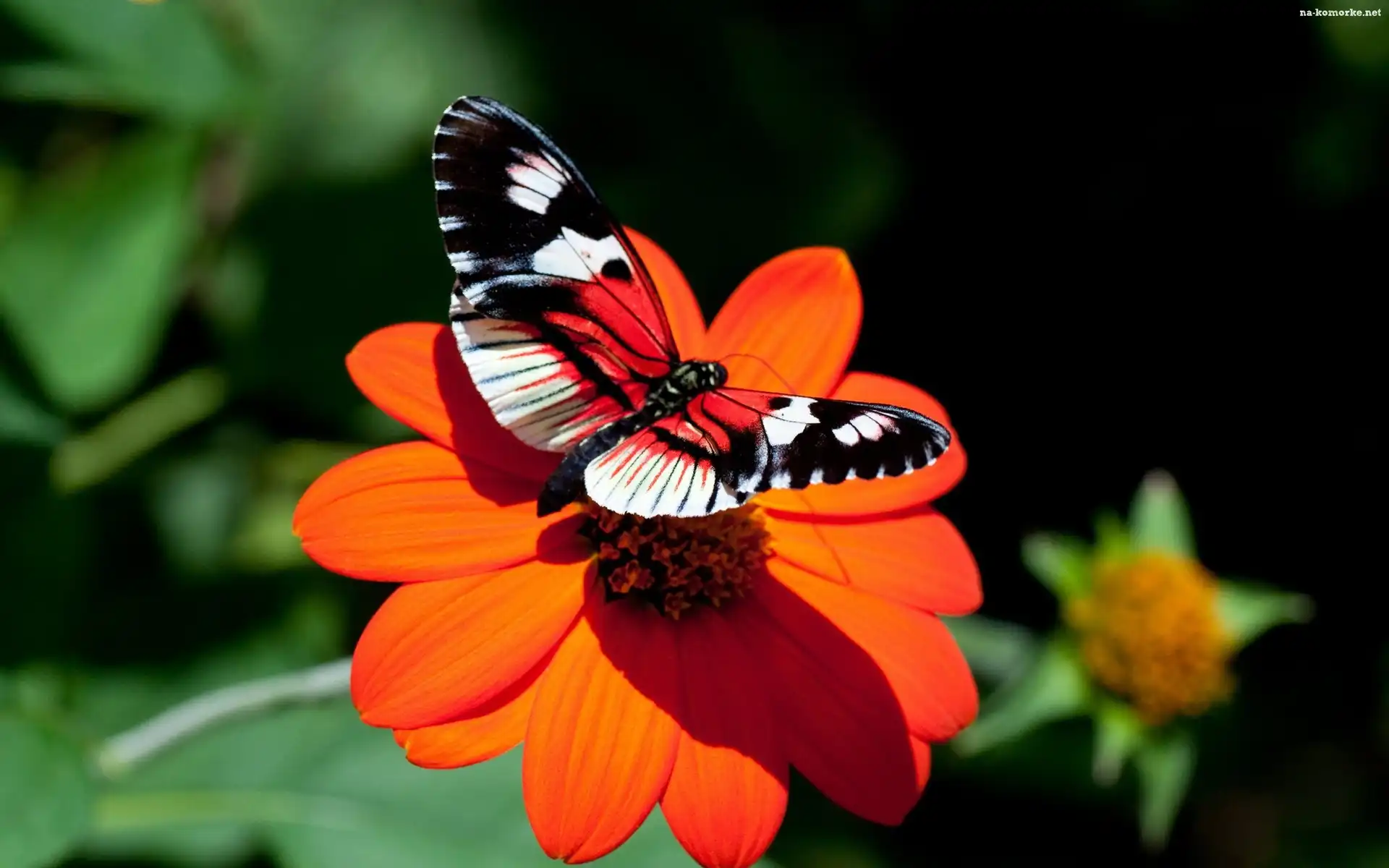 Motyl, Czerwony, Kwiat na Komórkę