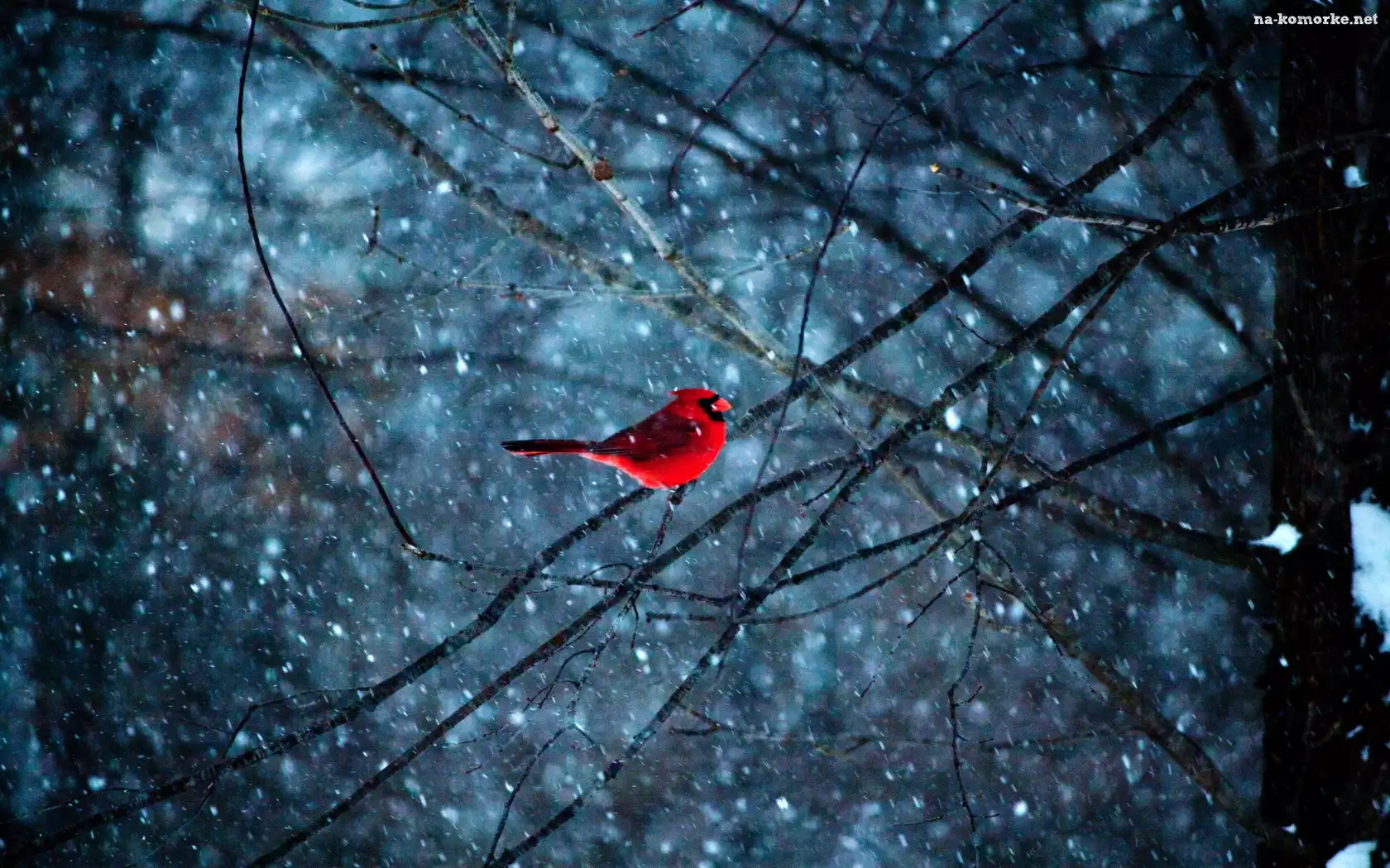 Czerwony, Śnieg, Ptaszek , Gałęzie na Komórkę